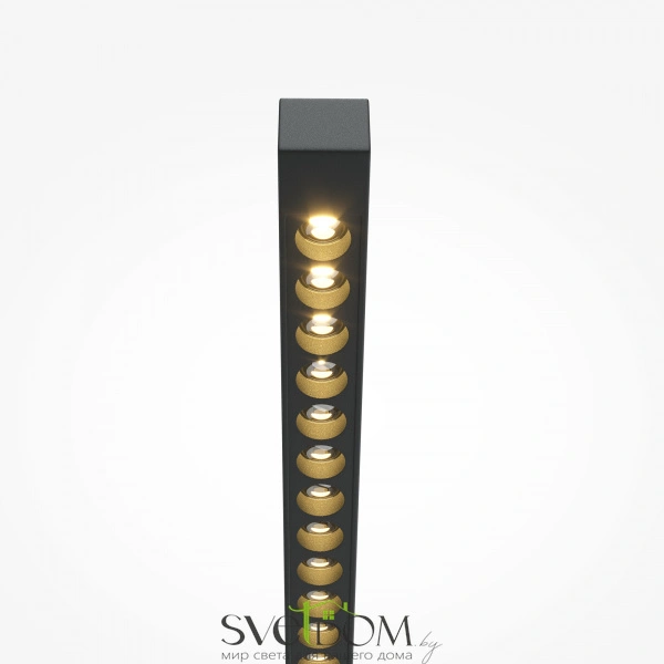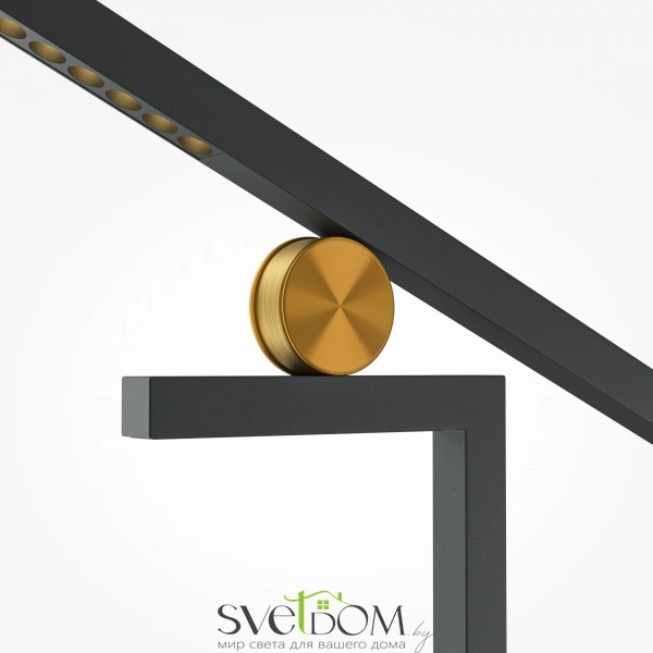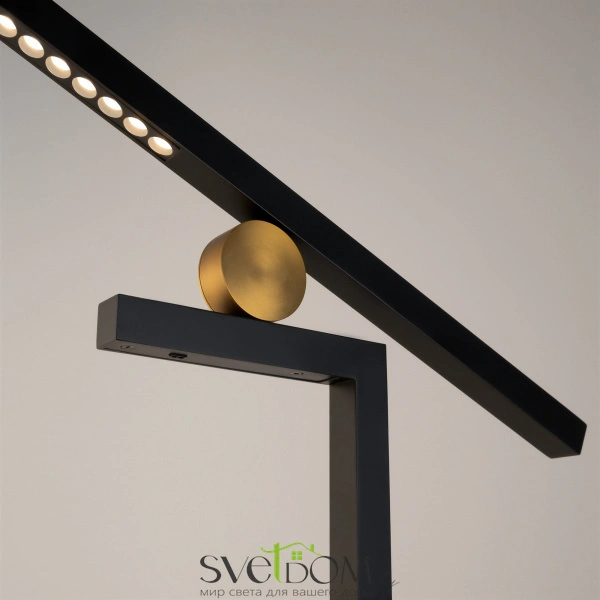 Металлическая арматура черного цвета с декоративными элементами в цвете латуни. источник света: led – светодиоды. значительный световой поток 1200 лм. цветовая температура 3000к. угол рассеивания света 120 градусов. тип рассеивания — прямой, есть функция диммирования. поверхность светильника гладкая. система управления с помощью датчиков, реагирующих на движение руки. световой элемент поворачивается вверх и вниз на 45 градусов и вправо или влево на 180 градусов. минималистичный дизайн подойдет для любых актуальных интерьеров.