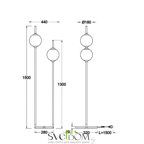 Металлическая арматура в черном цвете. плафоны-сферы из белого стекла. led-источник света с цветовой температурой 3000к. удобные выключатели вверхней части арматуры. функция раздельного включения световых элементов.