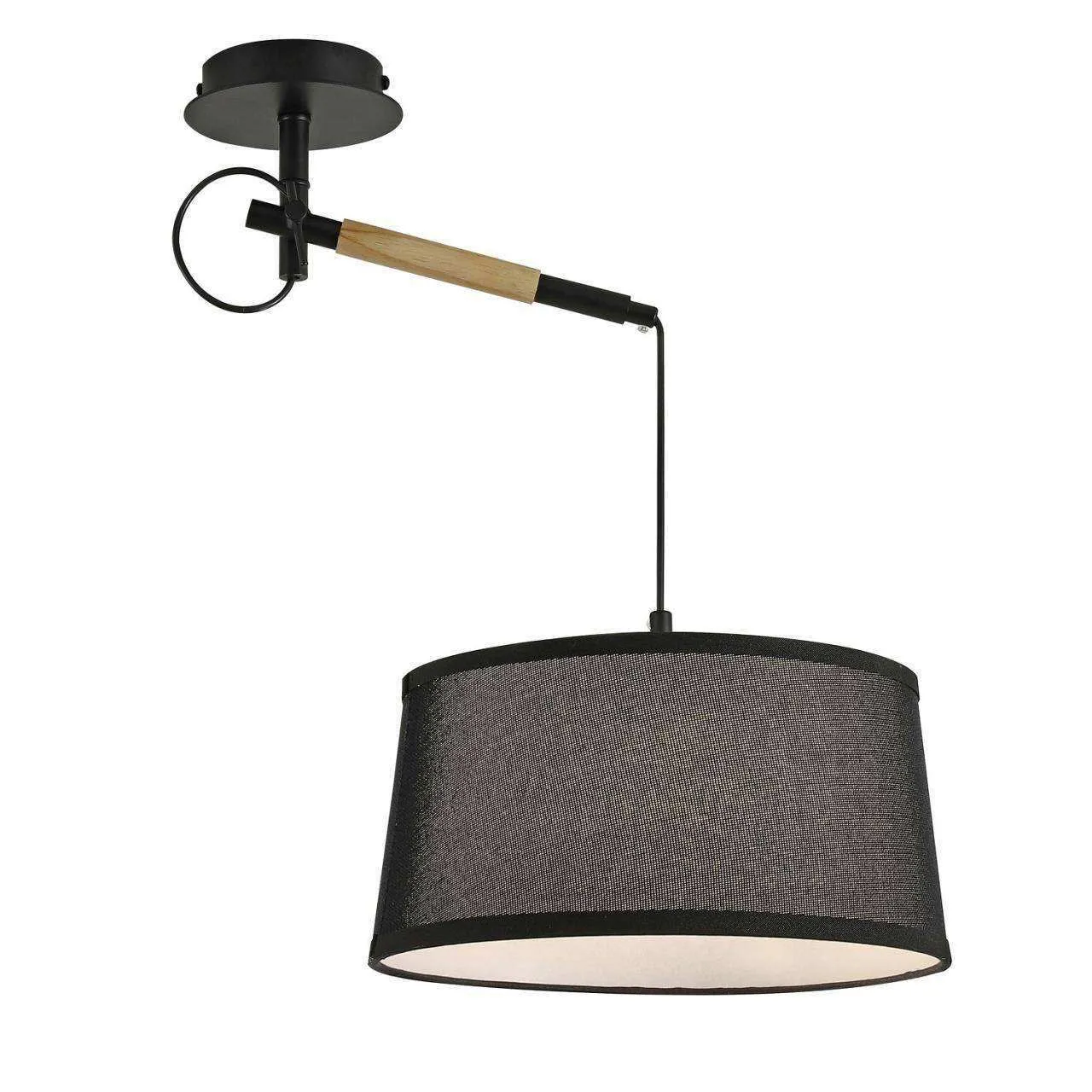 Каркас черного цвета со вставкой под цвет дерева, плафон из черной ткани, светильник можно монтировать как на потолок, так и на стену