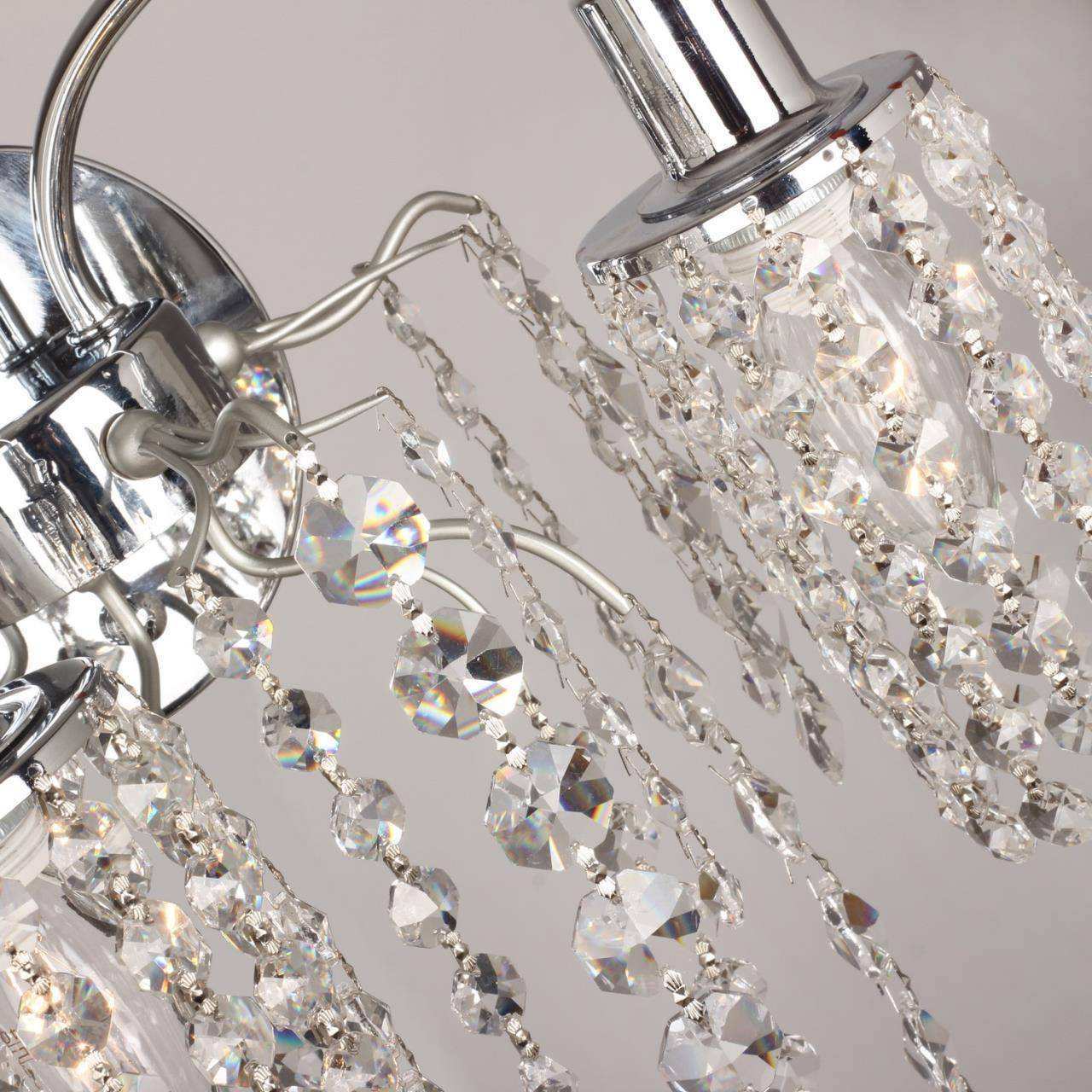 бра коллекции Caesar выполнена в традиционном классическом дизайне хрустальных люстр, металлический каркас цвета хром, подвески из хрусталя высшего ка