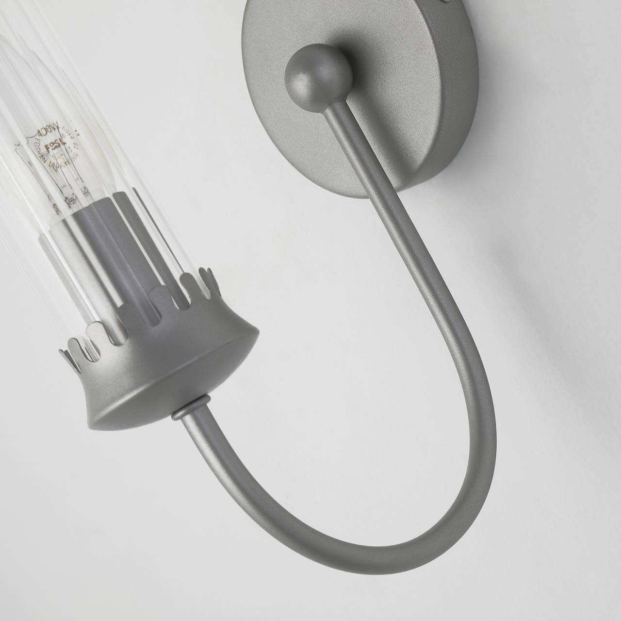 каркас цвета окрашенного серебра, плафоны из прозрачного стекла с рифленым узором