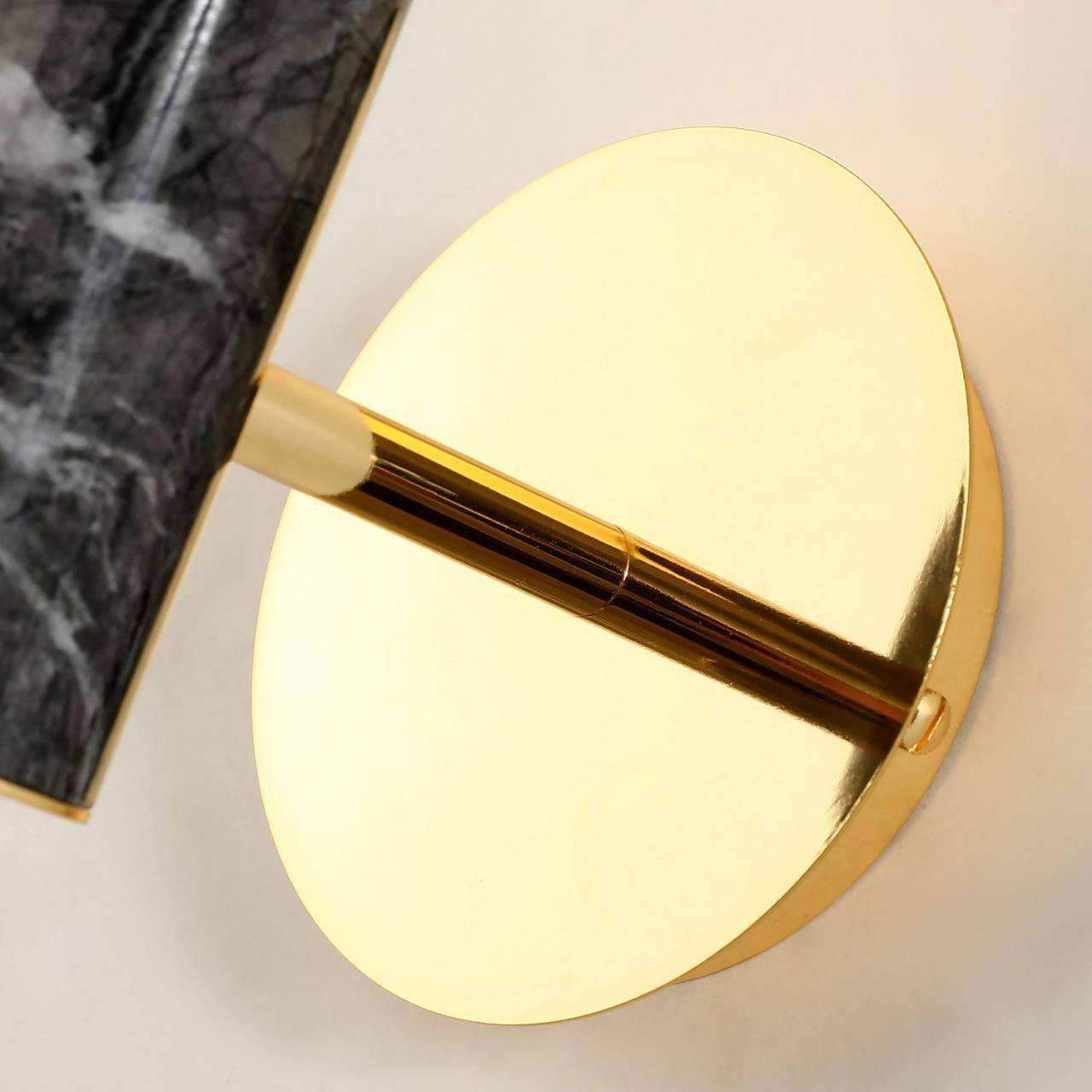 Каркас золотого цвета, отделка - имитация черного мрамора, выдувной плафон белого цвета