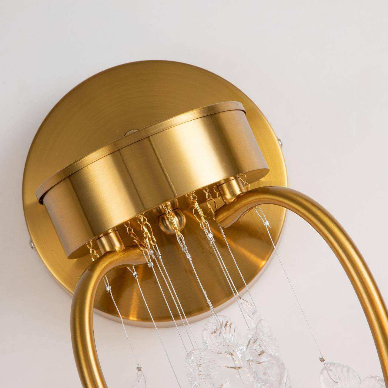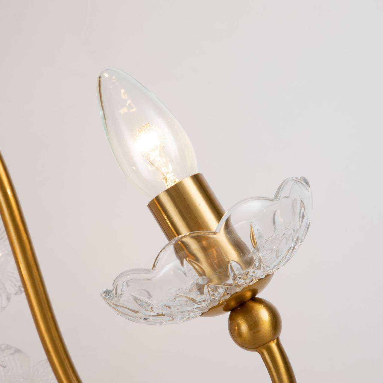 Каркас золотого цвета, блюдца из прозрачного стекла, декоративные элементы из прозрачного стекла