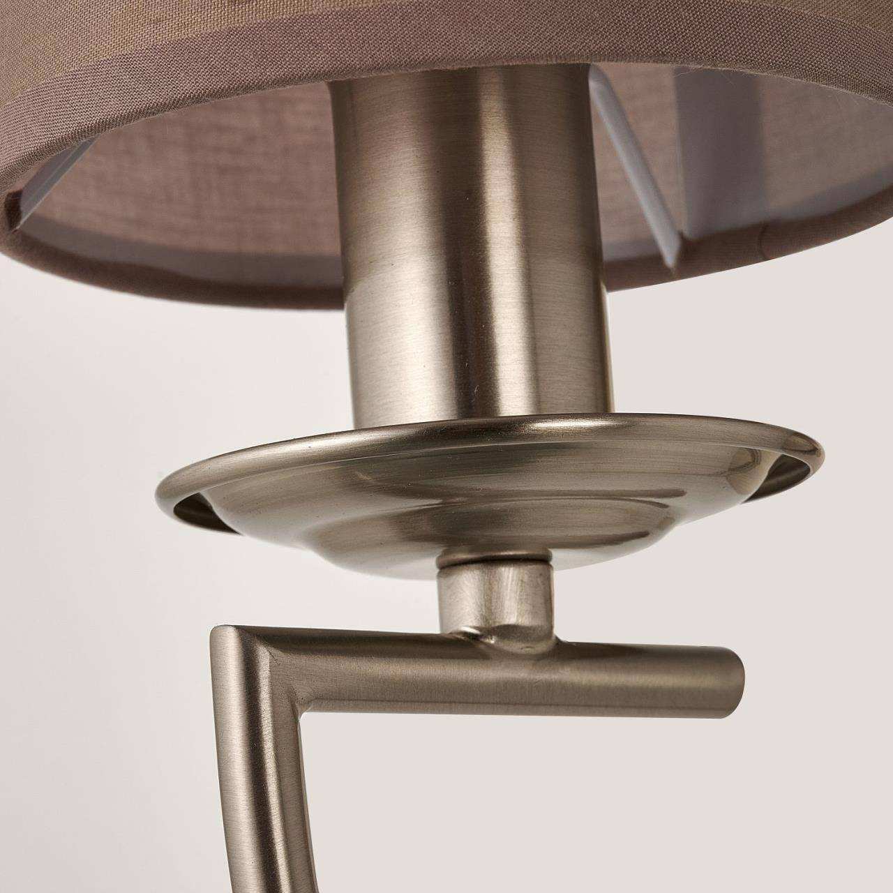 Каркас цвета никеля, плафон из коричневой ткани