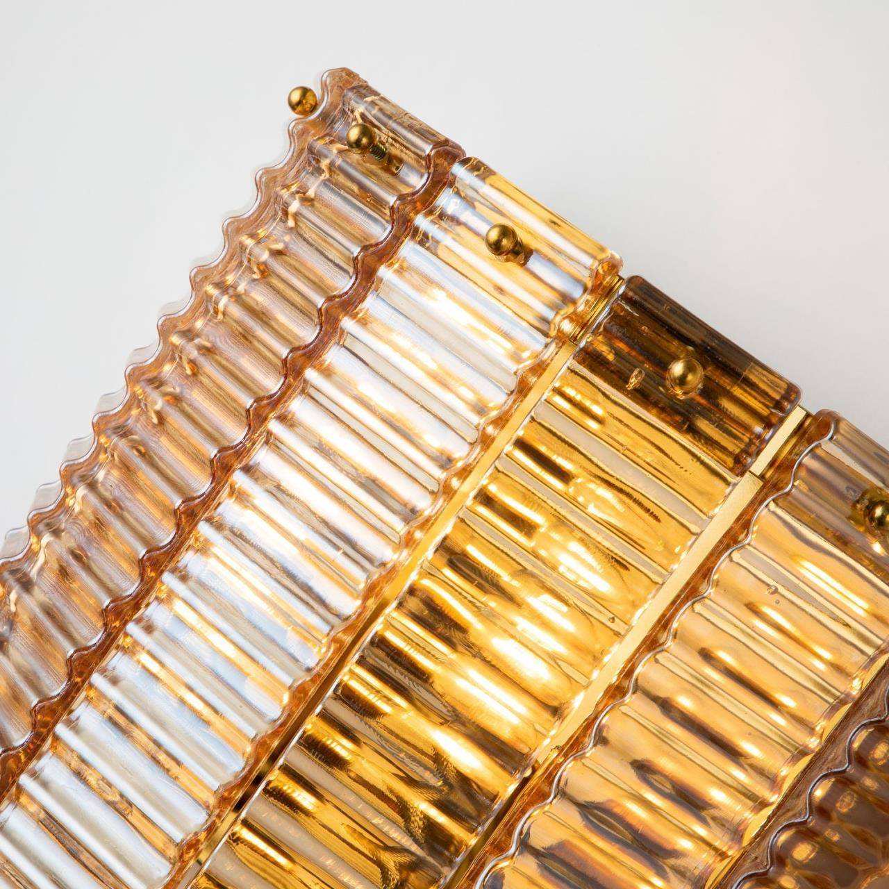 Каркас золотого цвета, подвески из рифленого стекла янтарного цвета, изготовленного по муранской технологии