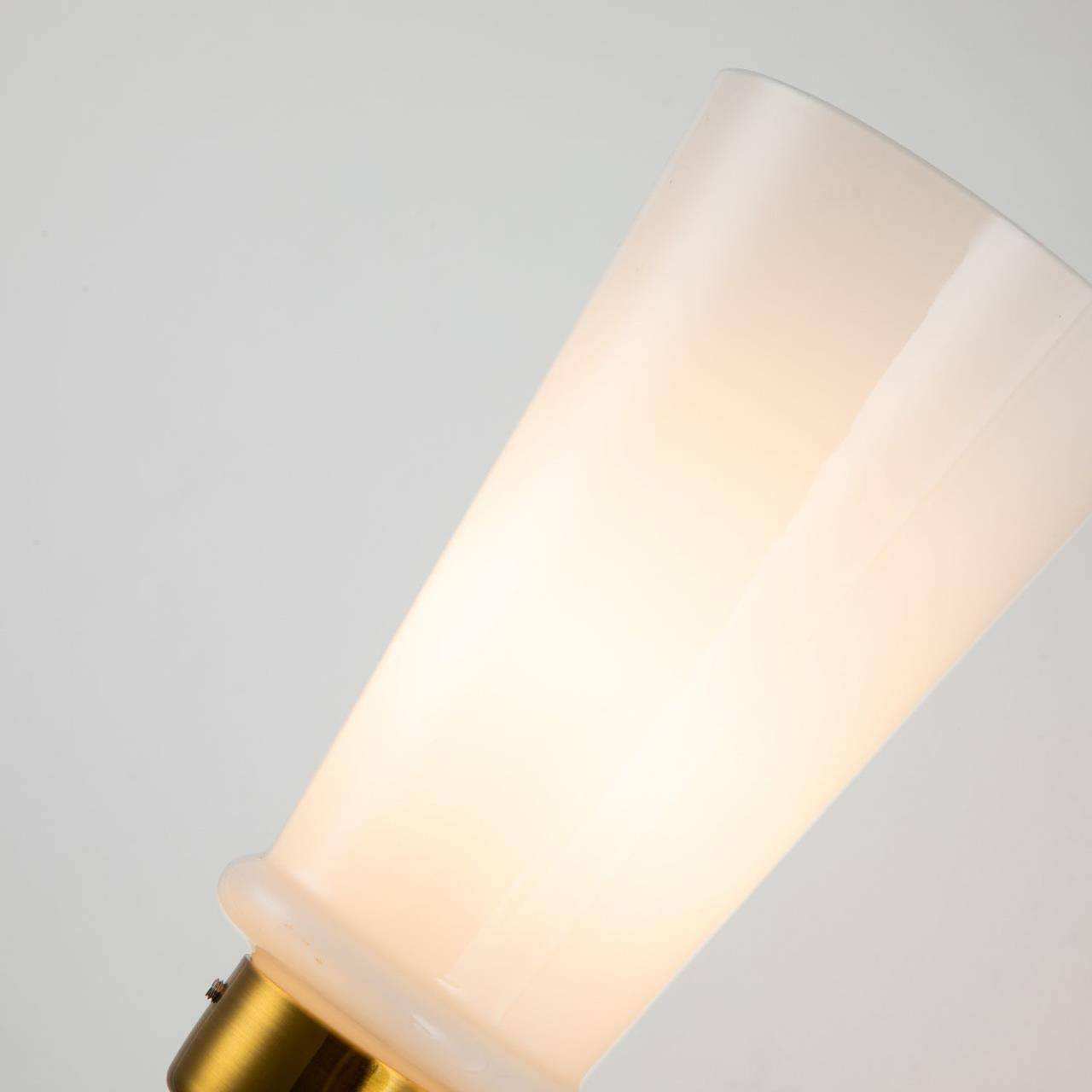 каркас цвета латуни, выдувные плафоны молочно-белого цвета