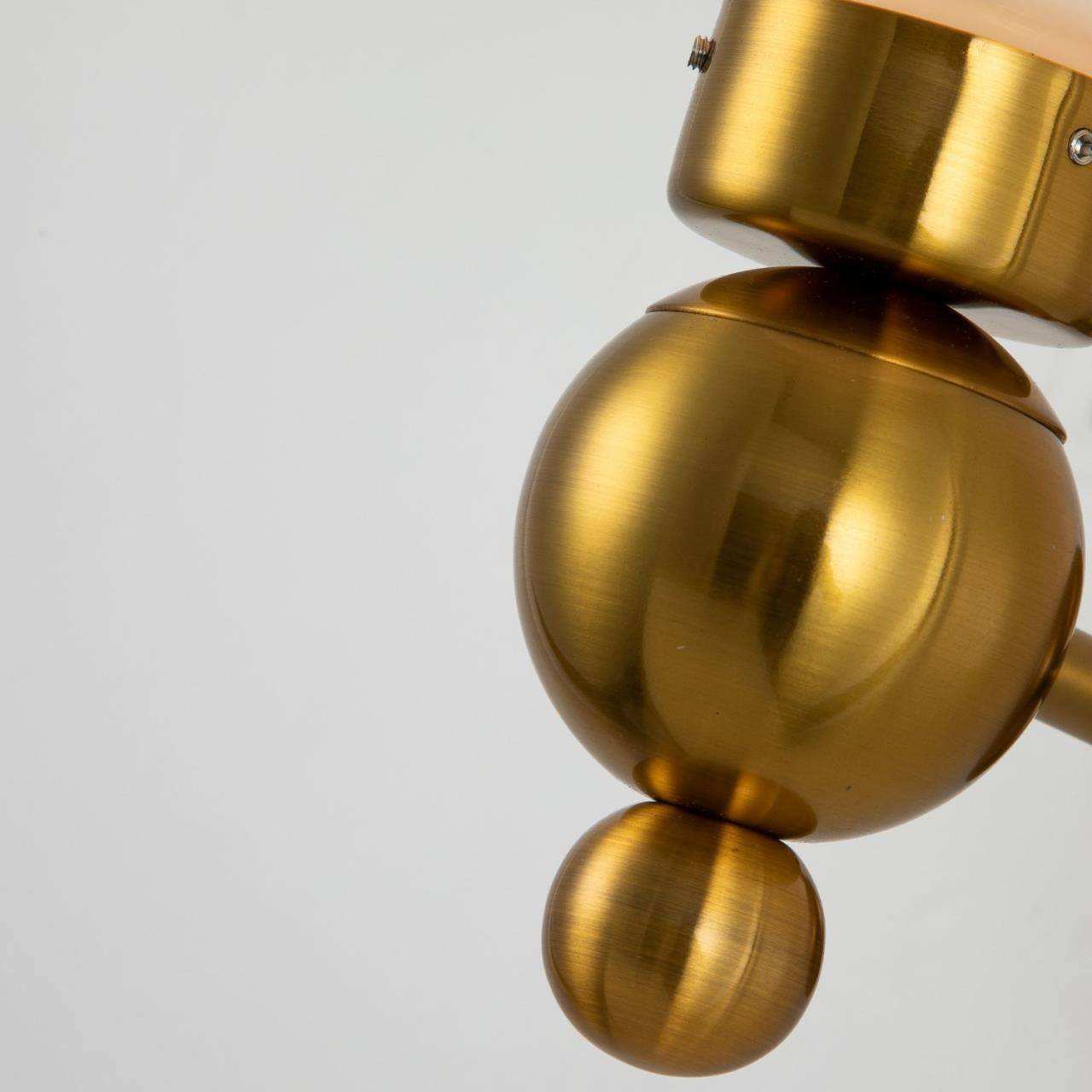 Каркас цвета латуни, выдувные плафоны молочно-белого цвета