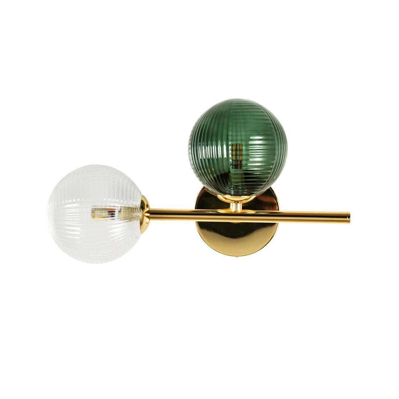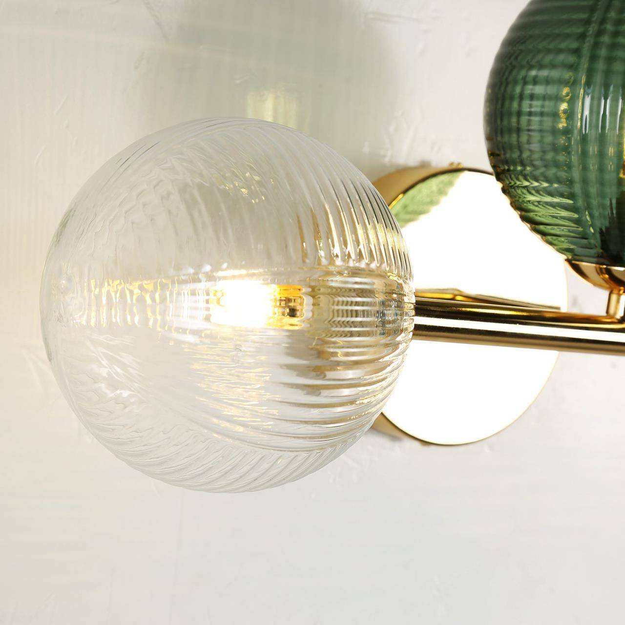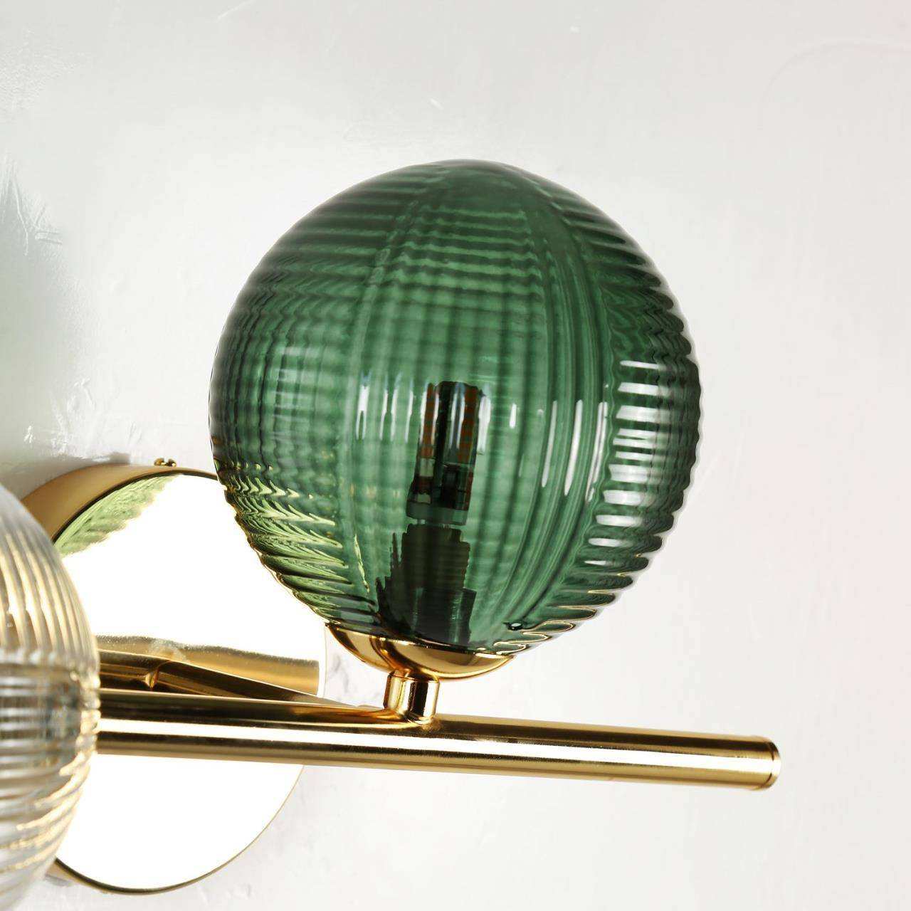 каркас цвета светлого золота, стеклянные плафоны прозрачного и зеленого цвета, лампу G9 можно менять