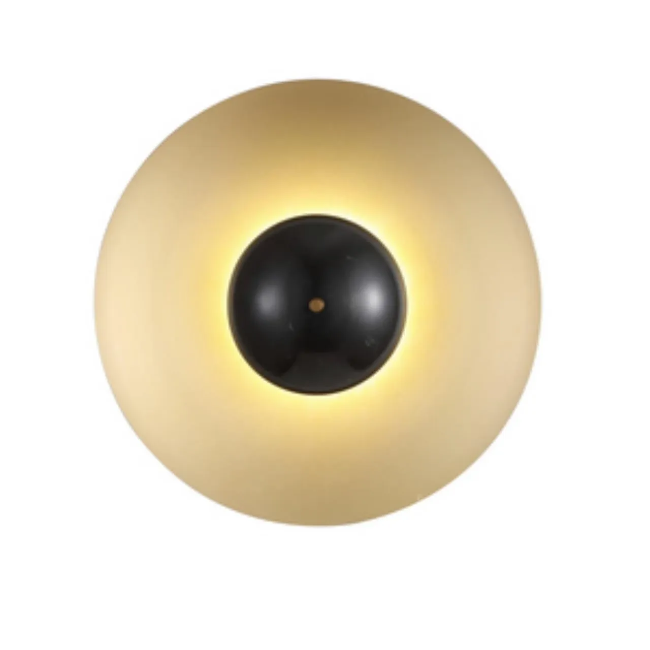 Настенный светильник - сочетание мраморного основания и металлического плафона, плоский круглый абажур диаметром 40 см в медном оттенке, модуль LED