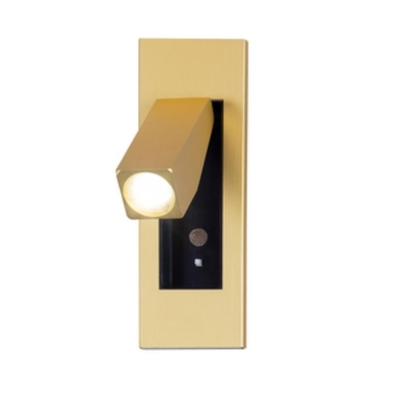 Встраиваемый настенный светильник с лампой LED, плафон в цвете анодированное золото со встроенным выключателем, угол поворота вертикально - 90 градусо