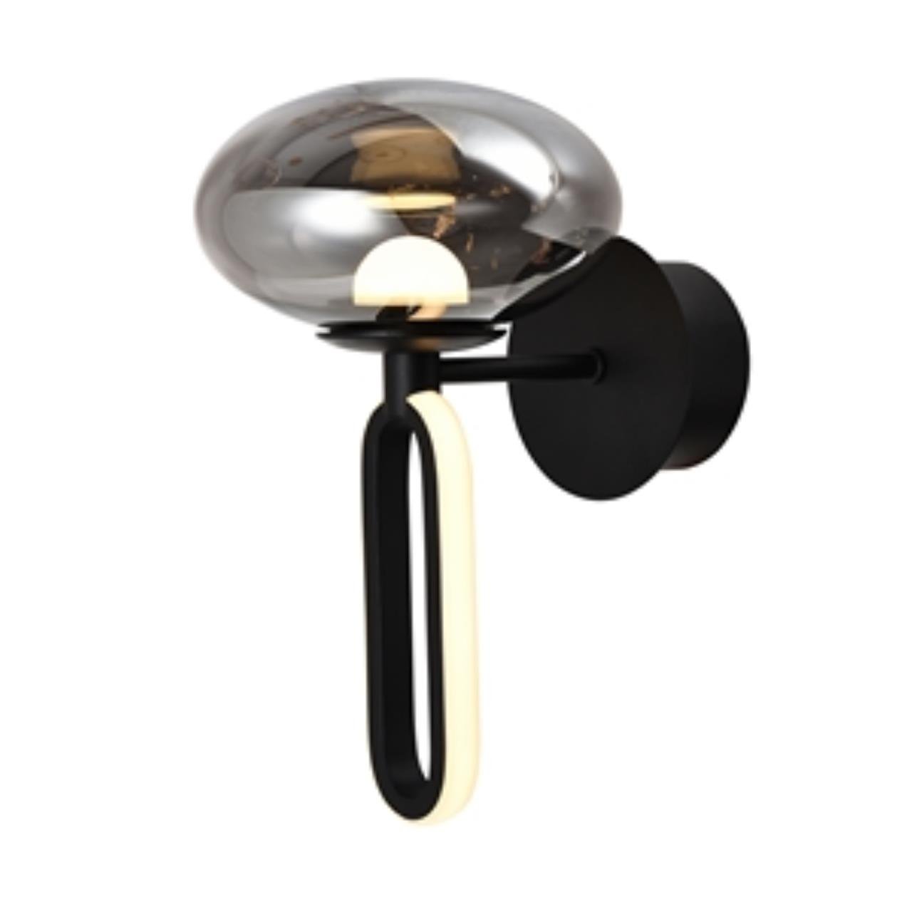 Настенный светильник с выдувным стеклянным плафоном, внутри него расположен LED-модуль с закругленным акриловым рассеивателем и декоративный элемент с