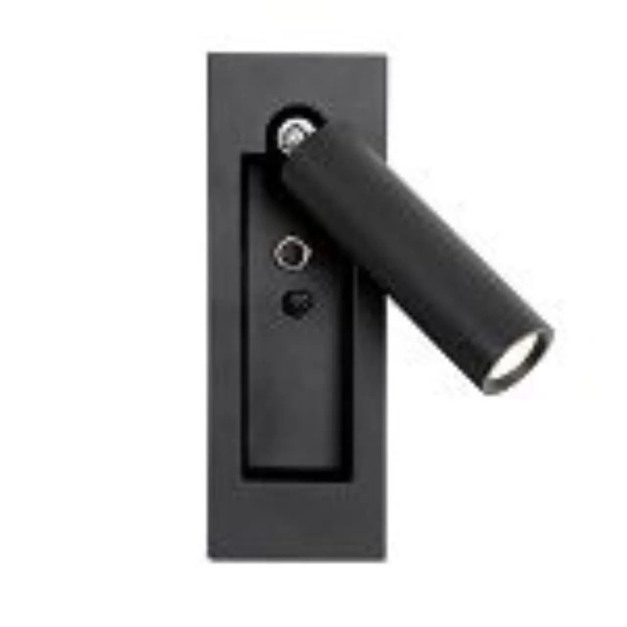 Настенный светильник с каркасом в матовой черном цвете, скрытый выключатель, активируется плафоном с модулем LED, угол поворота 90° и 350°