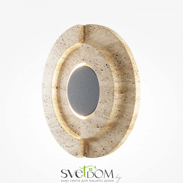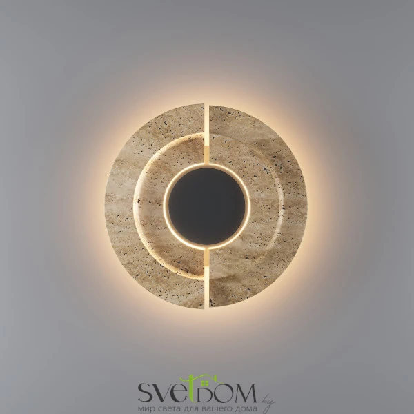 Арматура: металл черный матовый антибликовый. Основной материал: натуральный травертин с уникальным рельефным срезом. LED-источник 3000K, подсвечивающий внутренние грани камня и создающий мягкий ореол на стене. Настенный светильник-артобъект, вдохновленный эстетикой пустыни. Сочетание грубой фактуры камня и строгого металла. Монументальный дизайн с эффектом глубины и таинственности. Для создания акцентного освещения в современных интерьерах.