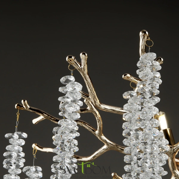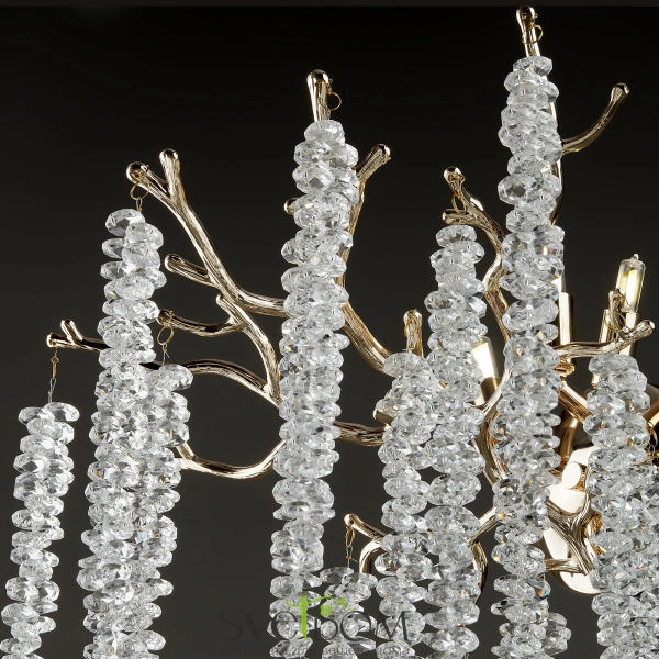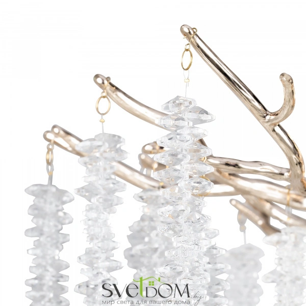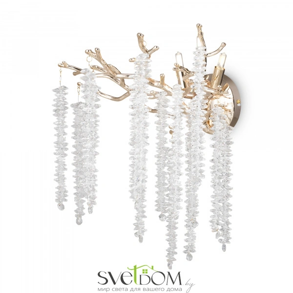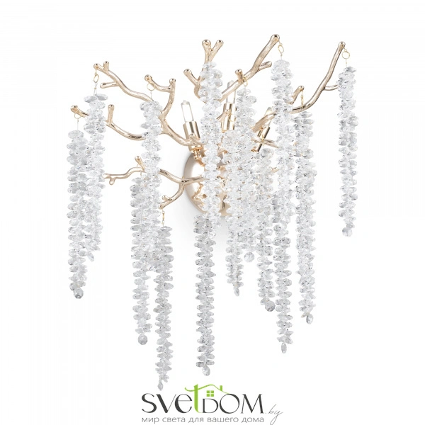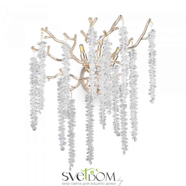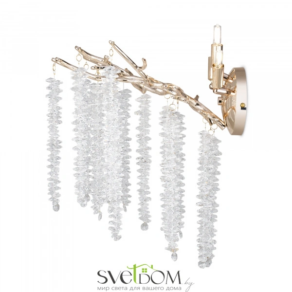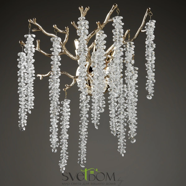 Материалы арматуры —металл, цвет — золото. Хрустальные декоративные элементы напоминают капельки - создают глубокие переливы света. Дизайн в трендовой растительной тематике. Источник света — лампа с цоколем G9 и с поворотной функцией.