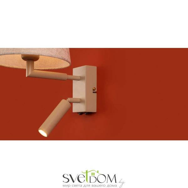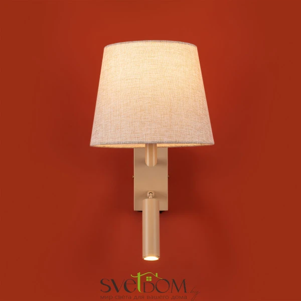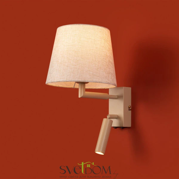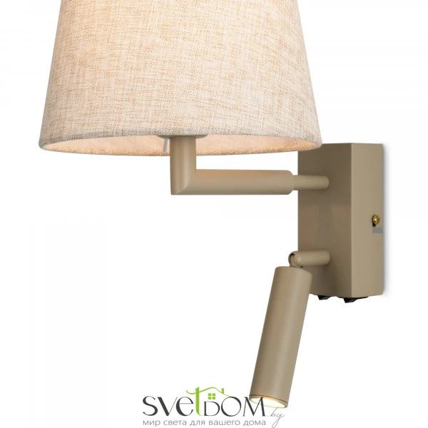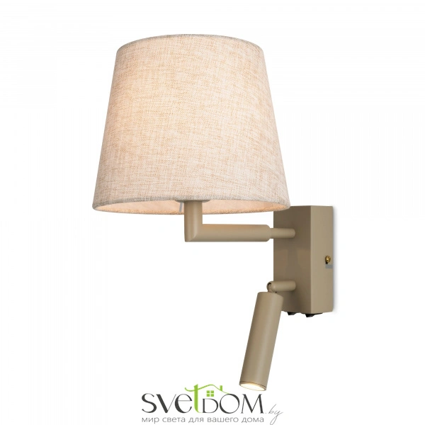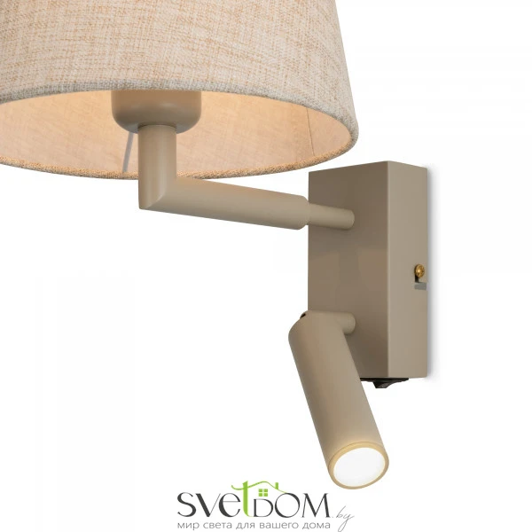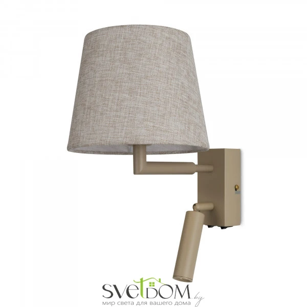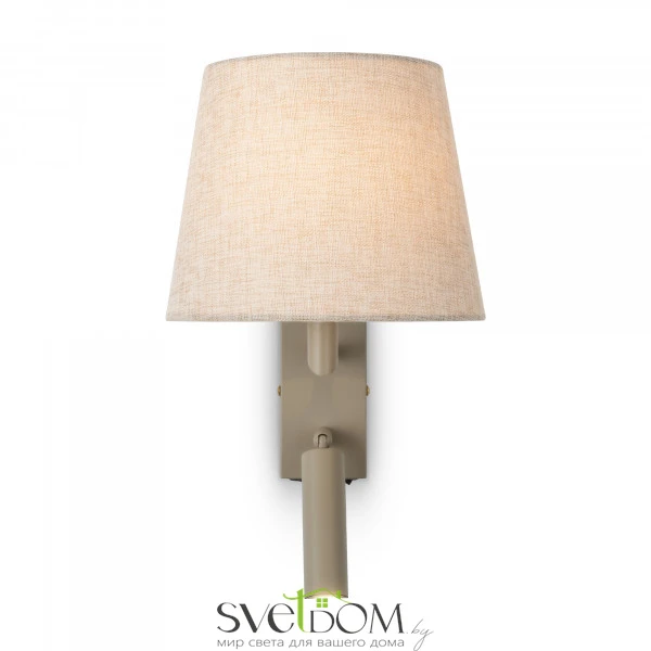 Металлическая арматура в цвете RAL 1019.  Тканевые абажуры в светлых оттенках. Лампа E27 (не в комплекте).Бра с двумя источниками освещения Led и цоколь E27. Разнообразие типов светильников  в серии.