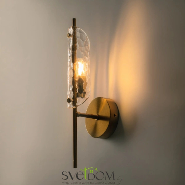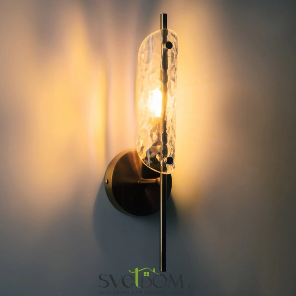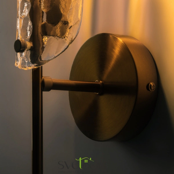 Металлический корпус, цвет— латунь. плафон, моделированный под вытянутый лепесток с эффектом чеканки на стекле. источник света — лампа с цоколем g9 и максимальной мощностью 30w дает яркое и равномерное освещение. компактная высота – идеальное решение для низких потолков.