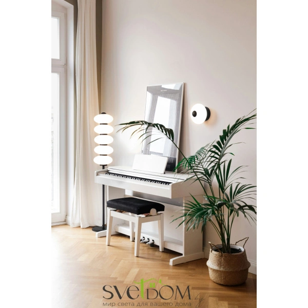 Материал арматуры — металл, цвет — черный. Напольный торшер оснащен LED-источником света. Цветовая температура 3000К.Индекс цветопередачи >82. Глянцевые белые стеклянные плафоны. Торшер высотой 1 метр. Сочетание ретро-дизайна и современных технологий: настенный светильник оснащен сенсорным управлением, а контрастное сочетание черной арматуры и белого стекла создает эффектную игру света.