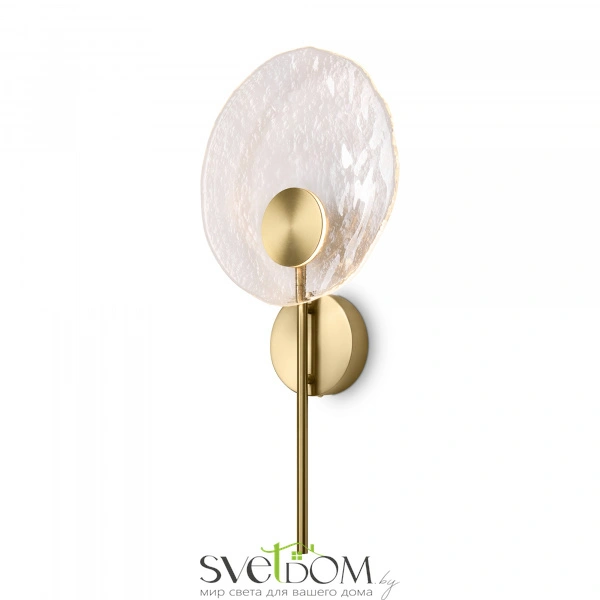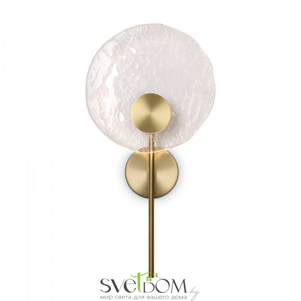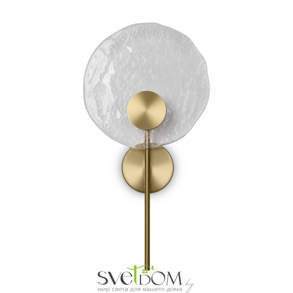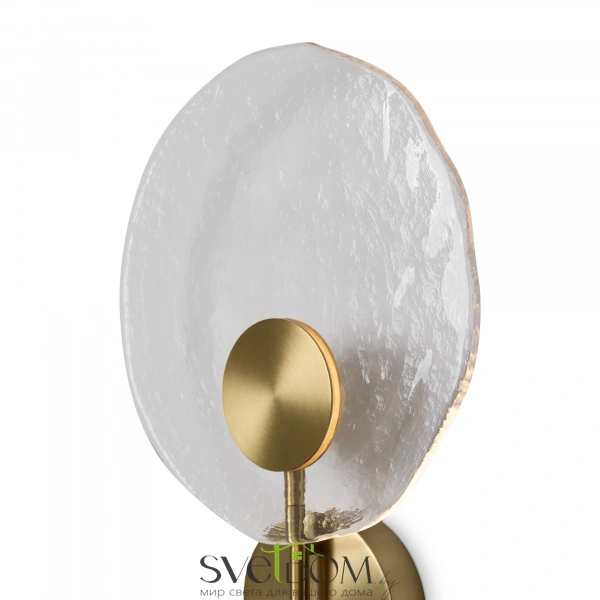 Материал арматуры — металл, цвет — латунь. Настенные светильники оснащены LED-источником света с цветовой температурой 2700К. Уникальное стекло ручного производства обеспечивает равномерное свечение всей поверхности плафона. Для достижения наилучшего светового эффекта рекомендуется использовать в сочетании с основными источниками света.