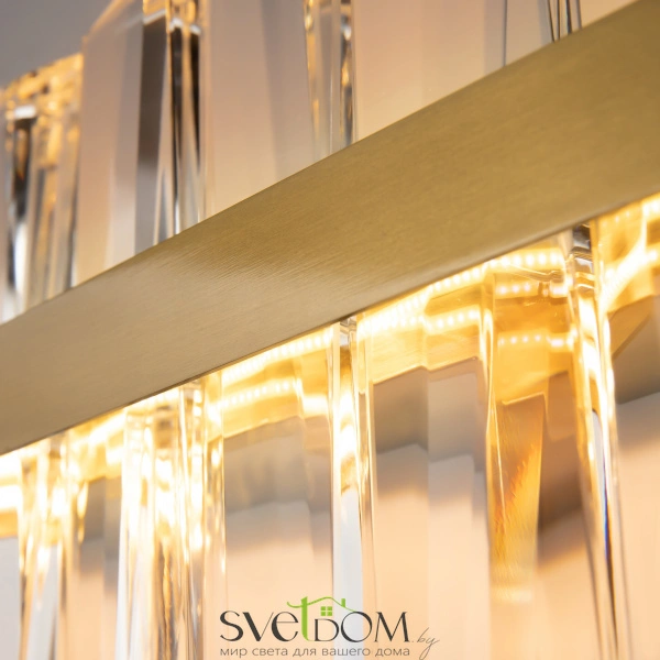 Матматериал арматуры - металл, цвет - латунь. декор - объемные прозрачные хрустальные элементы с чередующимся рисунком. led источник света, цветовая температура - 3000к. регулируемая длина тросов.