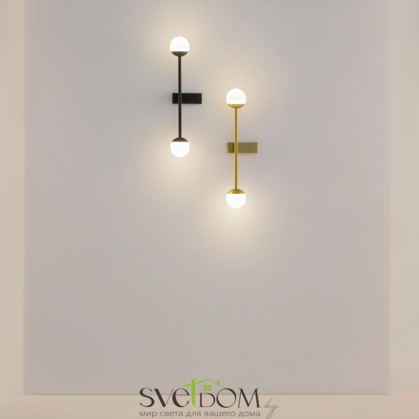 Материал арматуры — металл, цвета - латунь, черный.  плафоны-сферы из белого матового стекла. led источник  света, цветовая температура 3000к. встроенный выключатель регулирует яркость света прикосновением с шагом  25%, 50%, 75% и 100%.