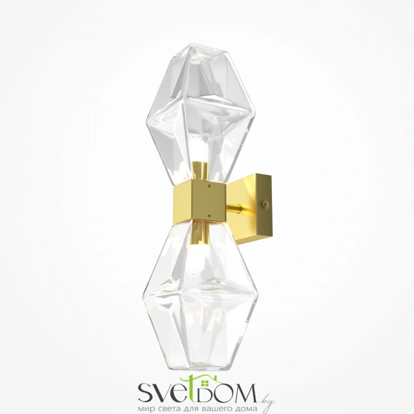 Металлическая арматура. Оттенки – золото, жемчужное золото. Плафоны – прозрачное литое стекло. Эффектный дизайн с крупными гранями. Регулируемая высота. Источник света – лампа с цоколем G9.