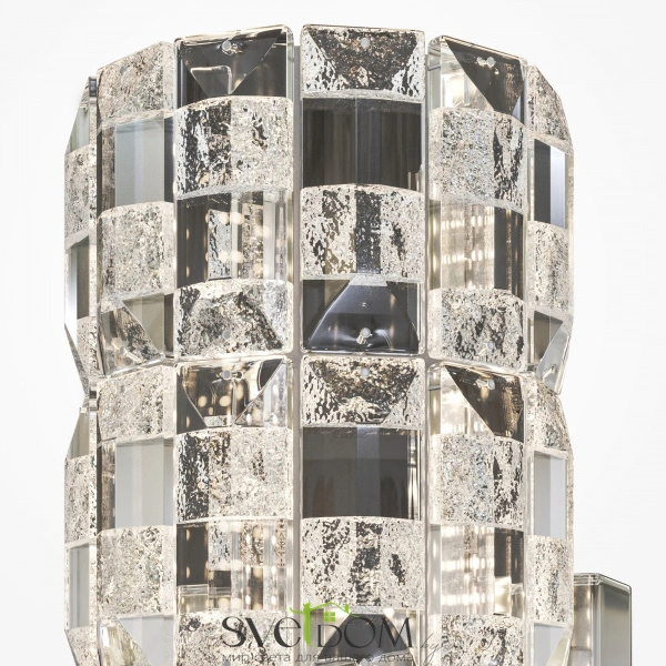 Металлическая арматура в двух вариантах цвета  — хром или золото. Прозрачные декоративные элементы из хрустального стекла.  Широкое кольцо снабжено LED-источником света. Цветовая температура потока излучения — 3000 К, угол рассеивания — 120 градусов. Регулируемый по высоте провод длиной 3 метра. Украшение шахматным рисунком.