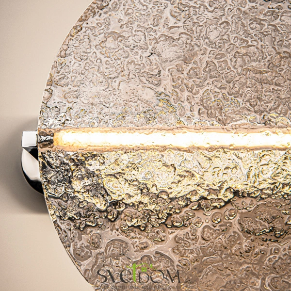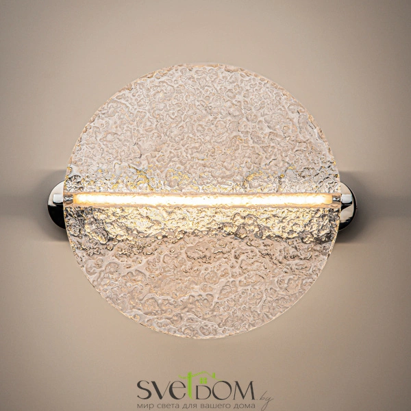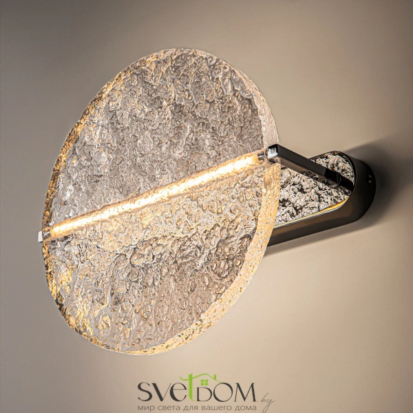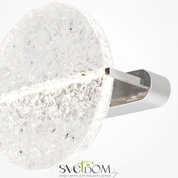 Материал арматуры - металл. Хромированное основание. Поворотный стеклянный рассеиватель, имитирующий лунное отражение на воде. LED-источник света. Настольная лампа и бра в коллекции. Возможность моделирования световых сценариев. Текстурный акрил для мягкого и широкого свечения. Победитель конкурса «The path of light», организованного Maytoni совместно с Британской Высшей школой Дизайна. В серии воплощена магия лунного света, парящего над водной гладью.