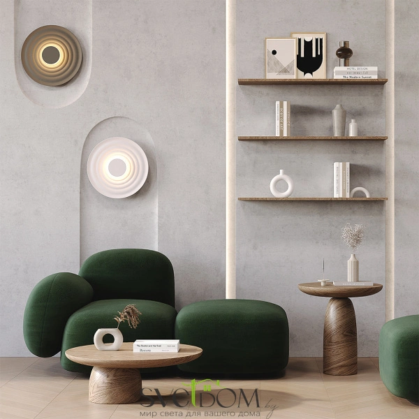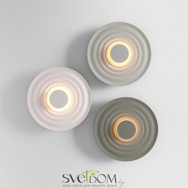 Светильники, вдохновленные японским садом камней и движением ветра. Волнообразные формы с матовой антибликовой поверхностью. Материал арматуры — алюминий. LED-источник света с температурой 3000К. Доступны в трех цветах: белый, серый, хаки. Переотраженный свет для создания мягкого освещения. Возможность составления различных композиций.