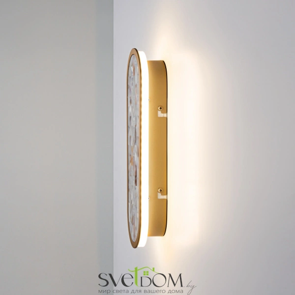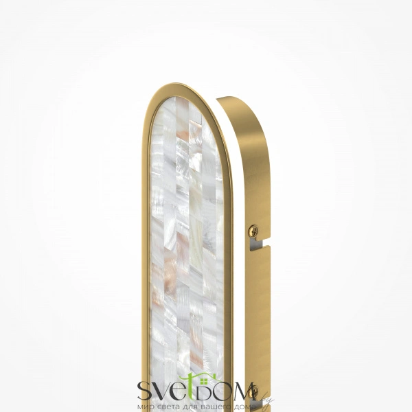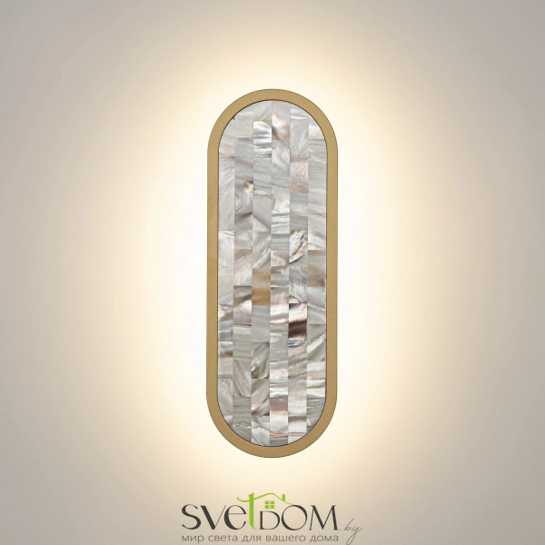 Серия настенных светильников Perlamour — это единение красоты природы и интерьерного дизайна. Декоративная мозаика из натурального перламутра играет нежнейшими бликами.  Контраст текстур — переливы перламутра и матовая поверхность металла цвета латуни. LED-лента под акриловым рассеивателем создаёт ореол на стене. Рядом с драйвером установлен переключатель (2700-3000-4000K), который позволяет установить температуру света при монтаже.  Эффектно светильники смотрятся и в комбинации друг с другом.