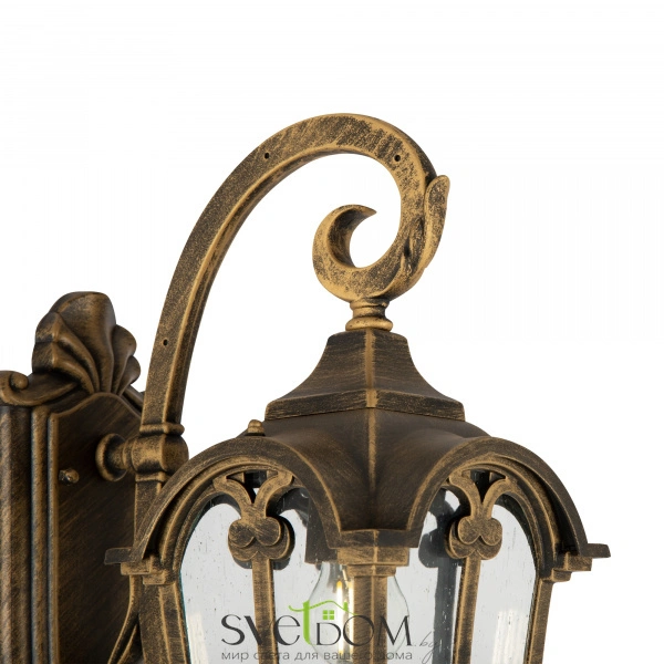 Широкий ассортимент серии включает настенные, подвесные и напольные светильники. Алюминиевый корпус моделей не подвержен коррозии и устойчив к перепадам температур. Волнистое стекло плафона обеспечивает красивые световые узоры. Модели представлены в двух цветах: античная бронза и черный с золотом. Источник света – лампы с цоколем Е27.