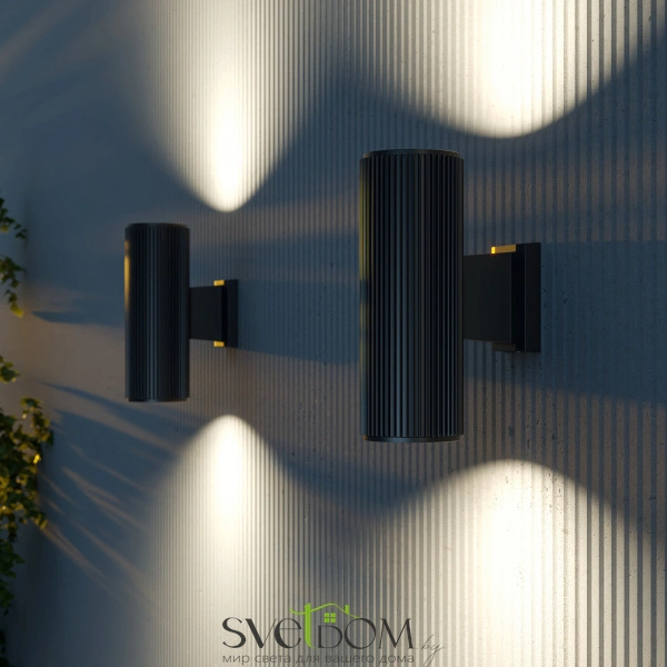Фактурные настенные светильники для архитектурной подсветки. металлический корпус устойчив к коррозии. ip 54 обеспечивает высокий уровень защиты от пыли и влаги. комплектация светильников позволяет настраивать двухсторонний и однонаправленный световой поток. в серии представлены модели, рассчитанные на 1 и 2 лампы (е27). три оттенка на выбор: черный, серый, белый.