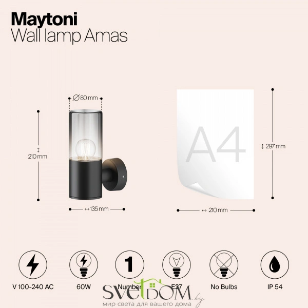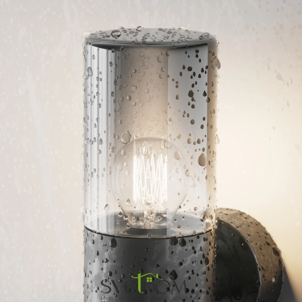 Алюминиевый корпус, цвет - графит. световой элемент - тонированное стекло. источник света - лампа с цоколем е27.  универсальная серия для современных и классических экстерьеров. защита ip54.