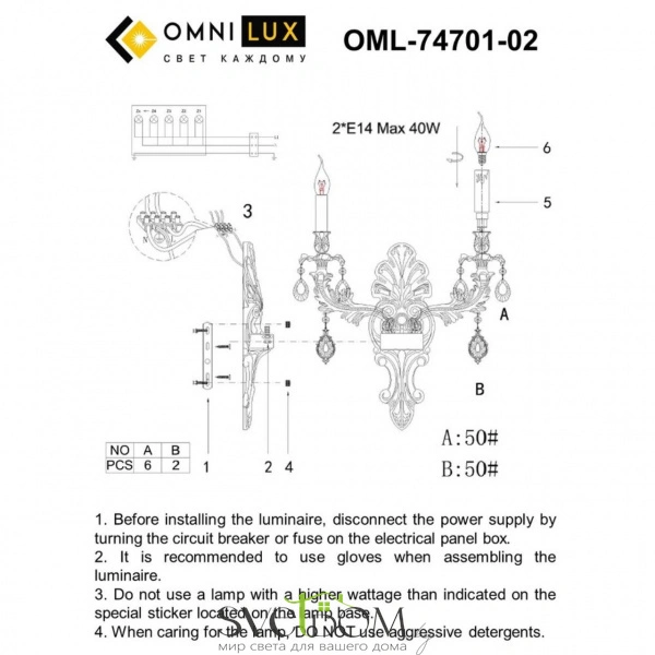 Настенные светильники OML-74701-02 Omnilux | Svetdom.by
