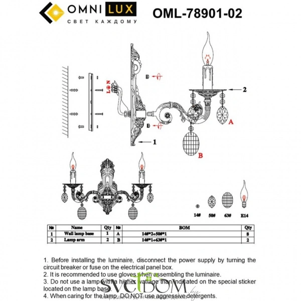 Настенные светильники OML-78901-02 Omnilux | Svetdom.by
