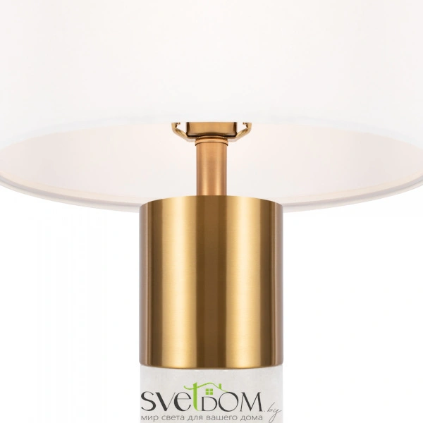 Металлическая арматура. цвет – латунь. абажур – белый хлопок. изюминка дизайна – элементы из натурального камня (алебастра) и прозрачного акрилового стекла. трендовый микс фактур. лаконичные формы в американском стиле. цоколь e14