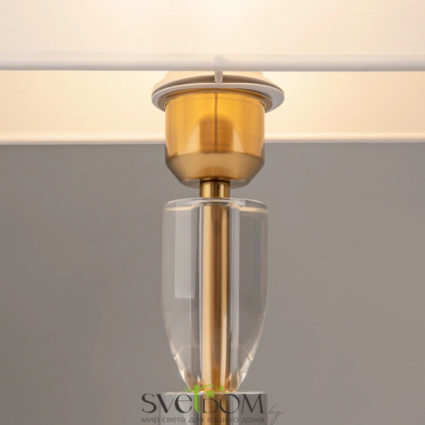 Арматура – металл. оттенки – хром, латунь. хлопковый абажур в белом цвете. прозрачный акриловый декор в основании. эстетика баухауса, трендовая форма абажура. цоколь е14