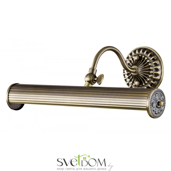 Серия светильников для подсветки картин с ребристым корпусом и круглым основанием в виде классической розетки. благодаря многообразию цветов можно без труда подобрать светильник, удовлетворяющий требованиям освещаемого интерьера. угол наклона подсветки регулируется механическим шарниром, установленным на кронштейне.