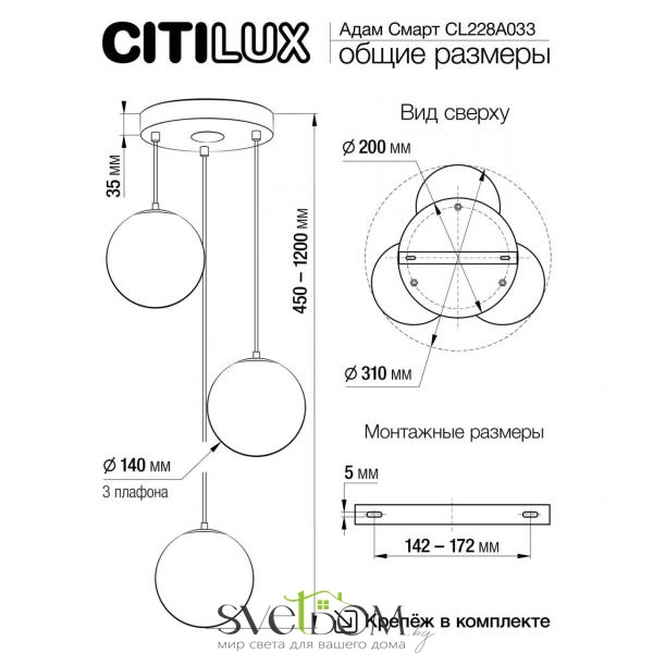 CITILUX CL228A033 Адам Смарт Бронза Св-к Подвес — аккуратное решение для современного интерьера