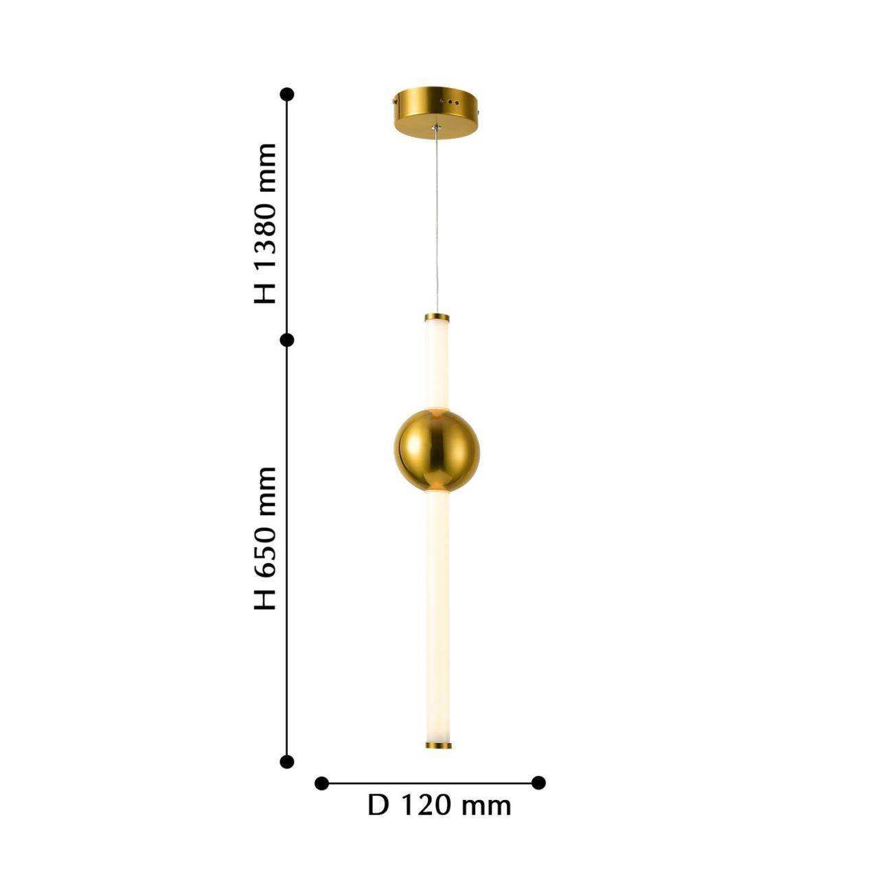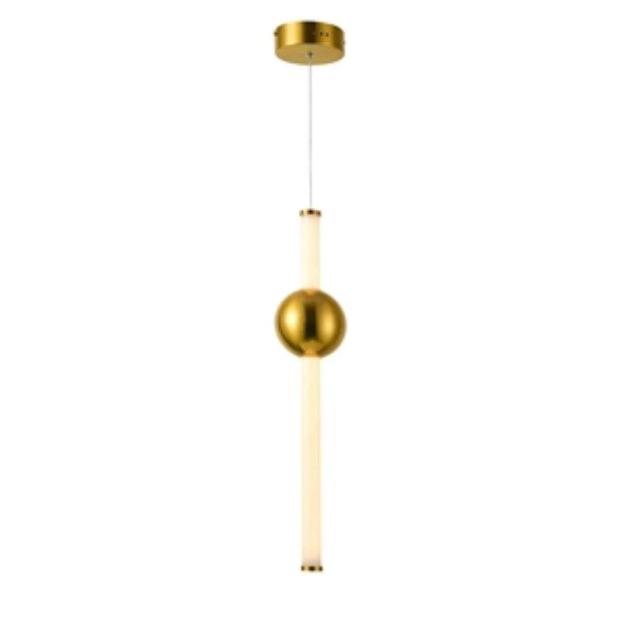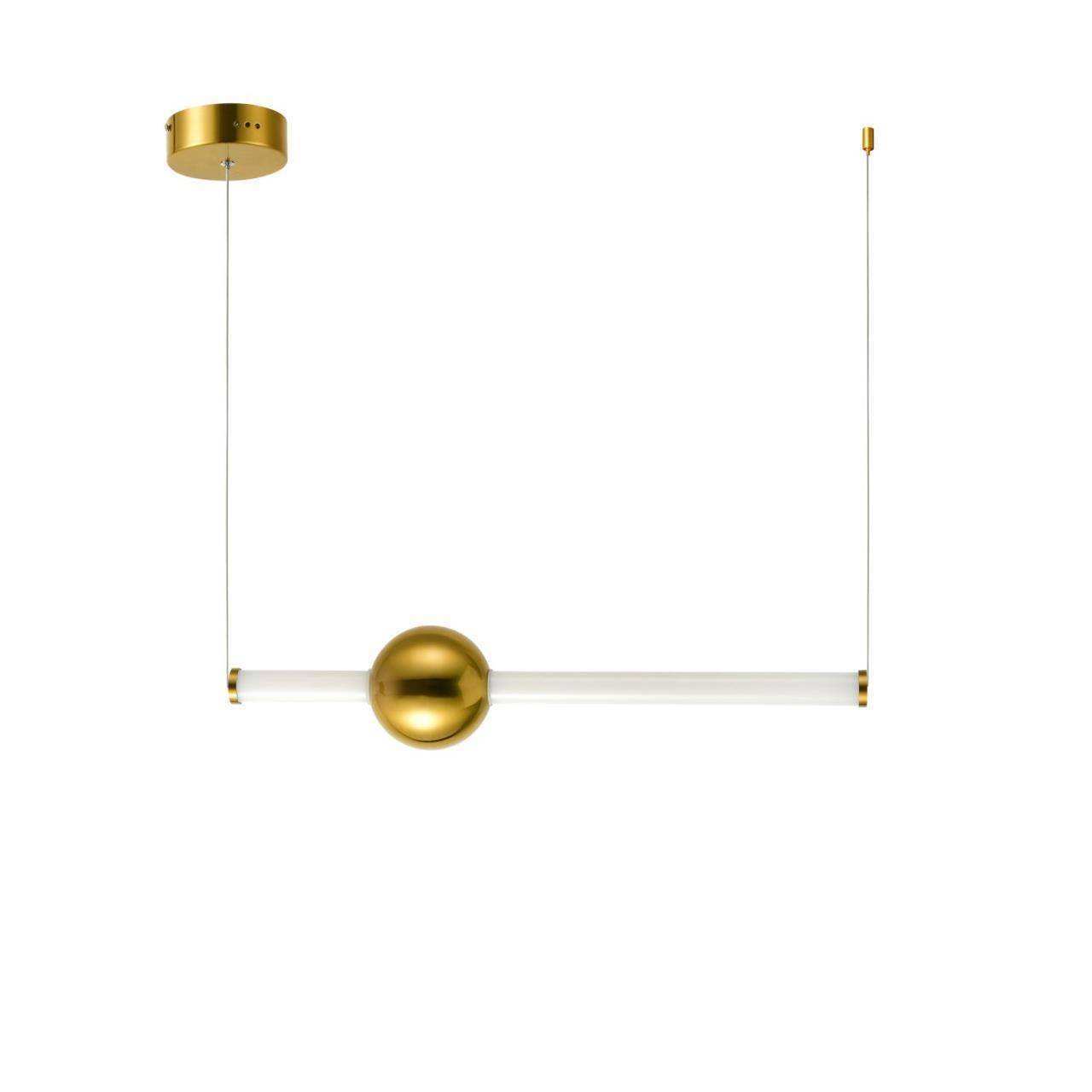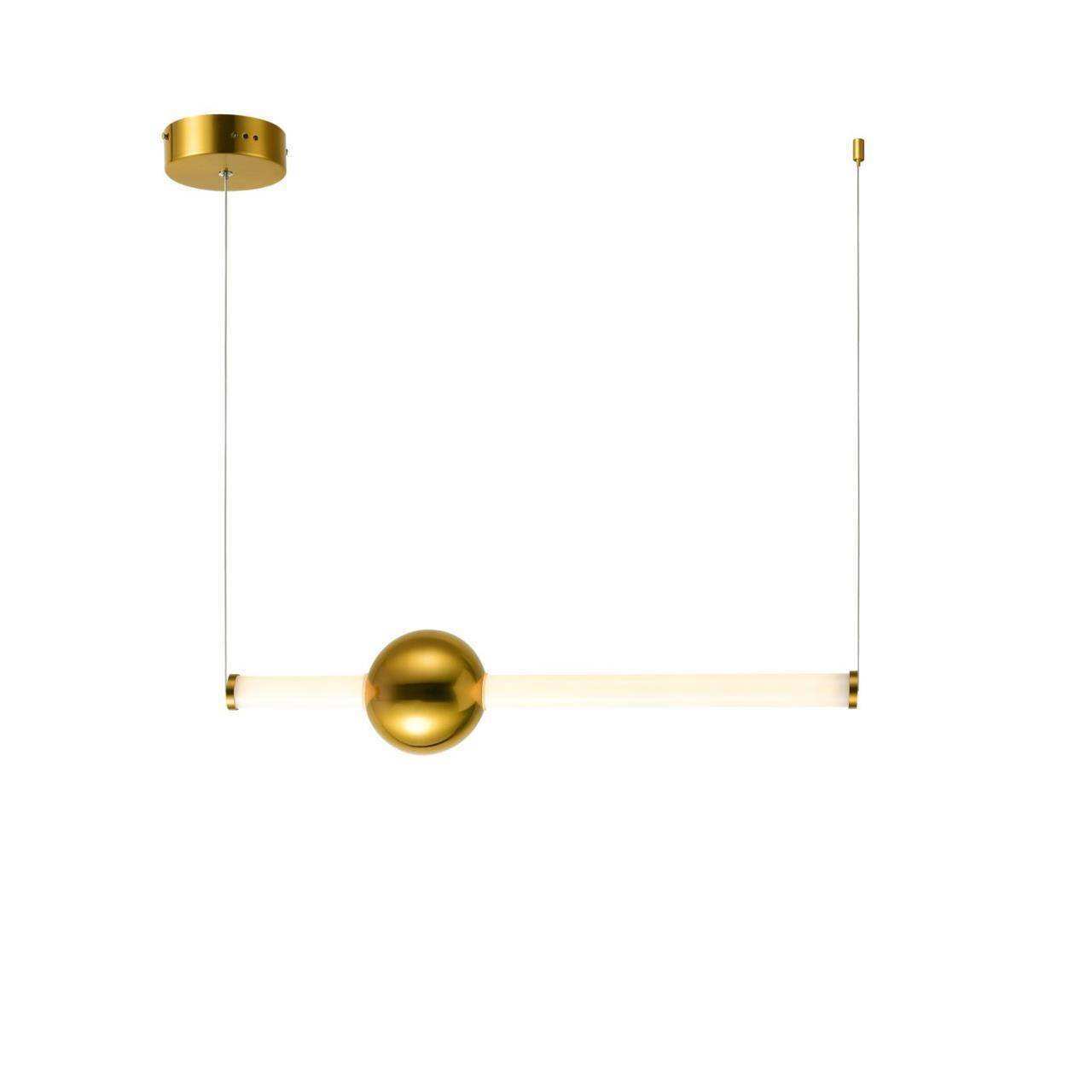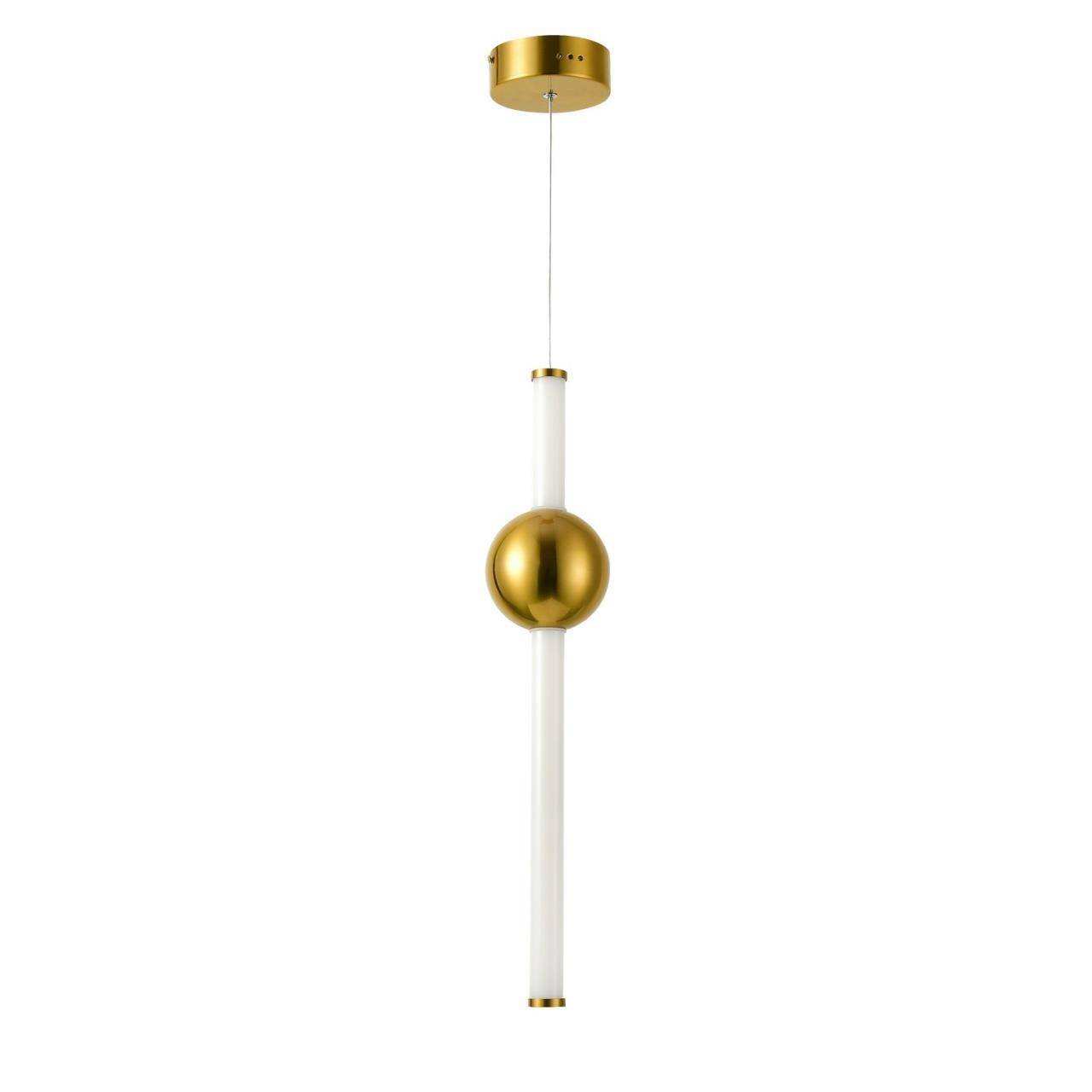 Каркас цвета золота, плафон из белого матового стекла, декоративный элемент в виде шара цвета золота
