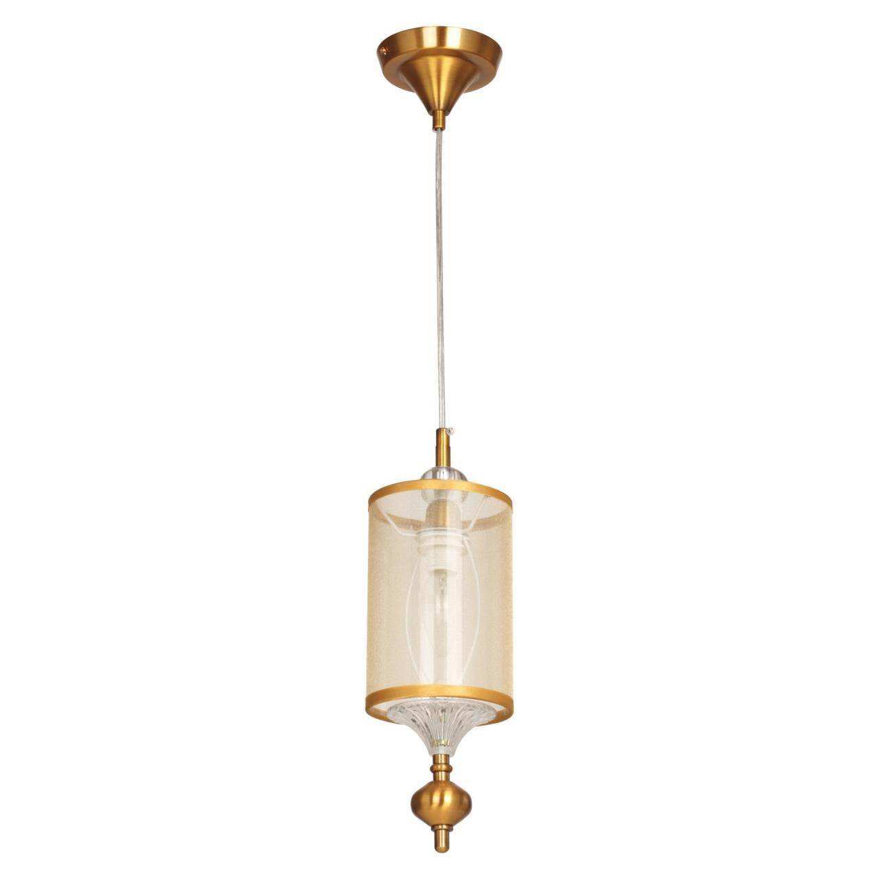 каркас цвета античной латуни, абажур из органзы цвета шампанского, декоративные элементы из прозрачного стекла