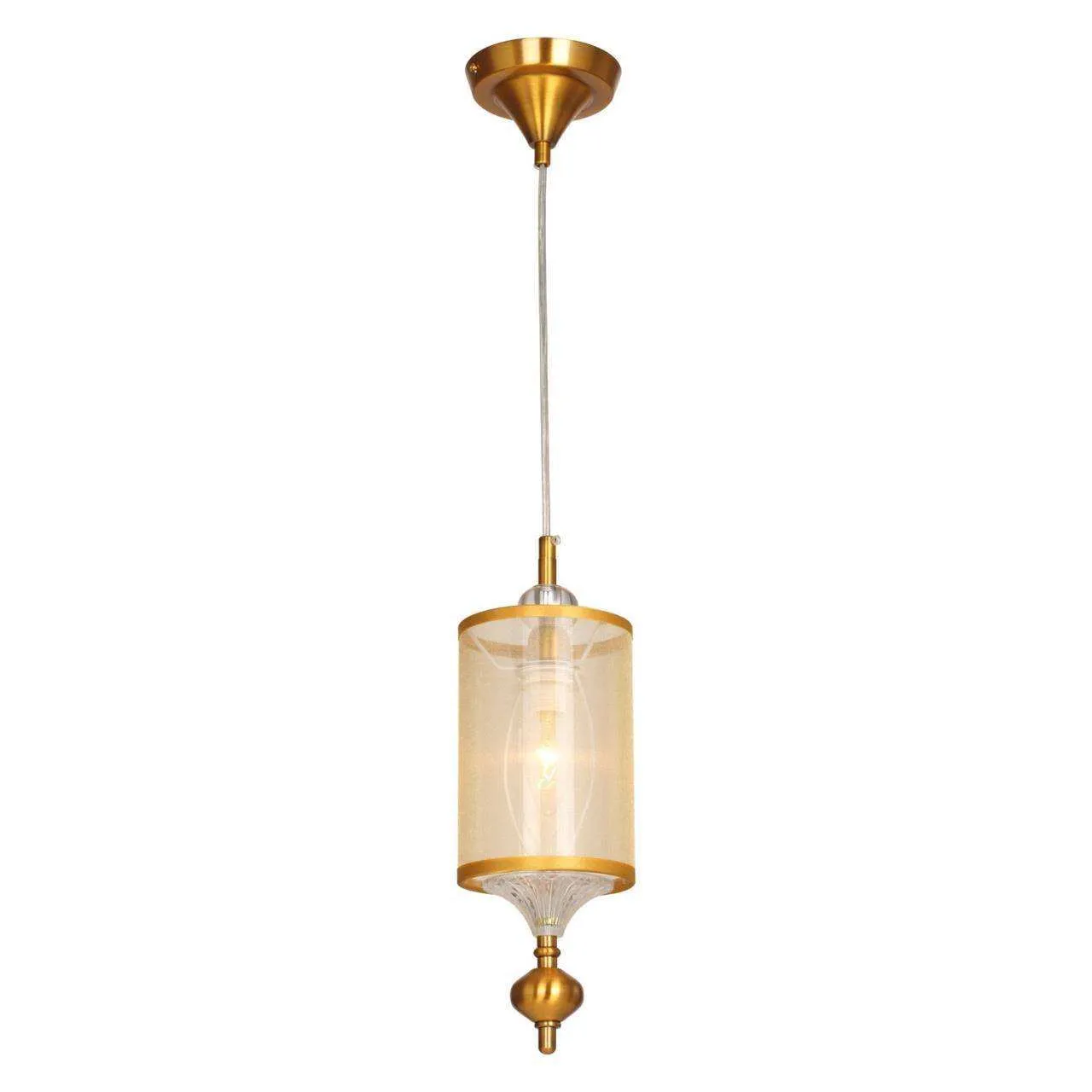 Каркас цвета античной латуни, абажур из органзы цвета шампанского, декоративные элементы из прозрачного стекла