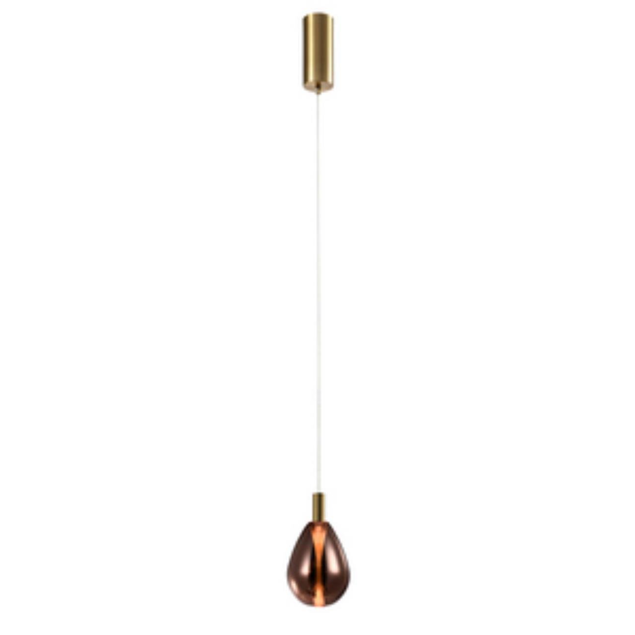 Подвес с декоративным элементом цвета латунь в центре, плафон медного цвета подсвечивается изнутри светодиодным источником света, регулируемая высота,