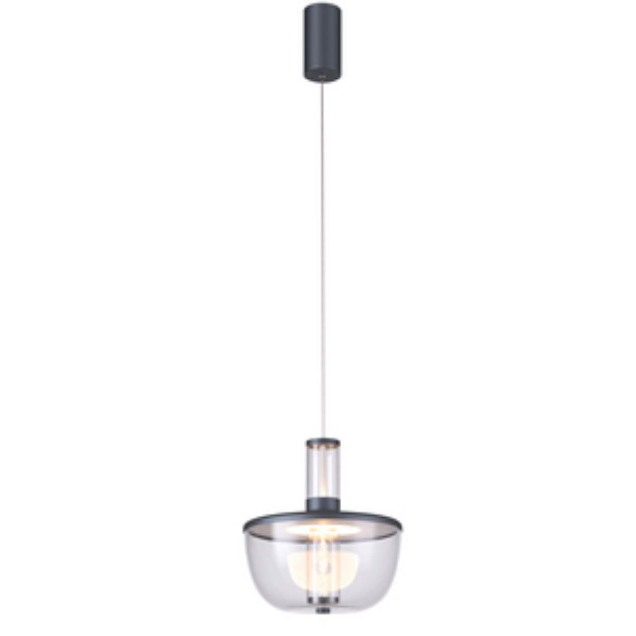 Подвес в темно-сером цвете с акриловой многослойной колонной с декором из воздушных пузырьков внутри плафона, переходящей в матовый стержень во внешне