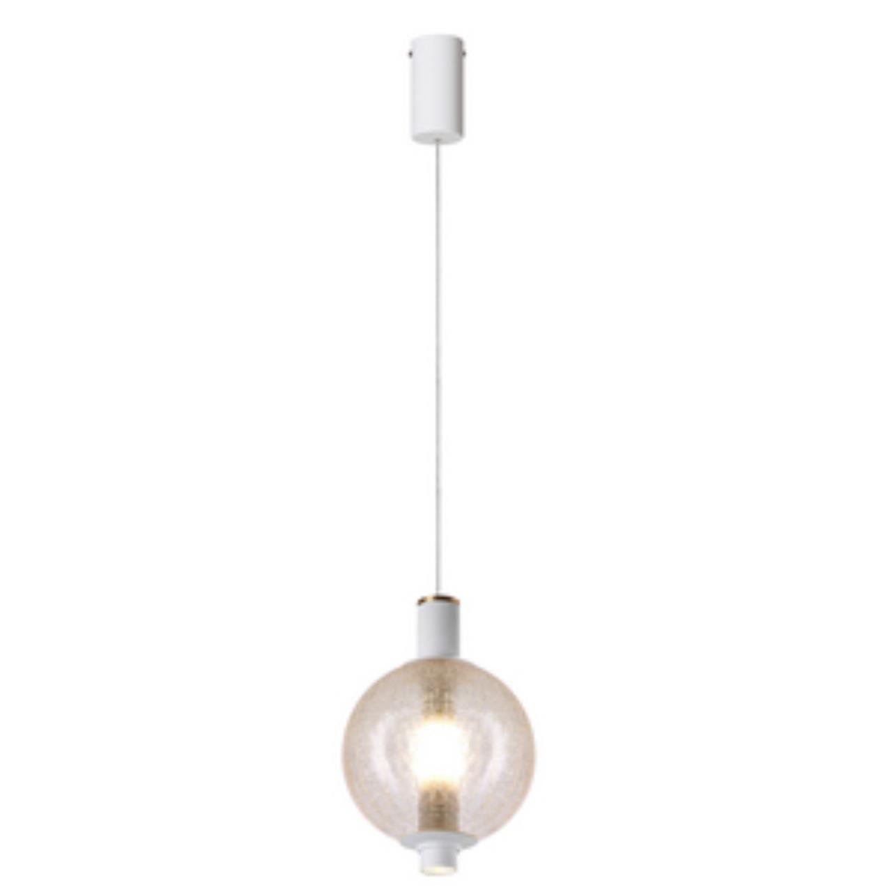 Подвес с двумя источниками света: стеклянный шар подсвечивается изнутри непрерывной линией равномерно рассеянных светодиодов в белом акриловом цилиндр