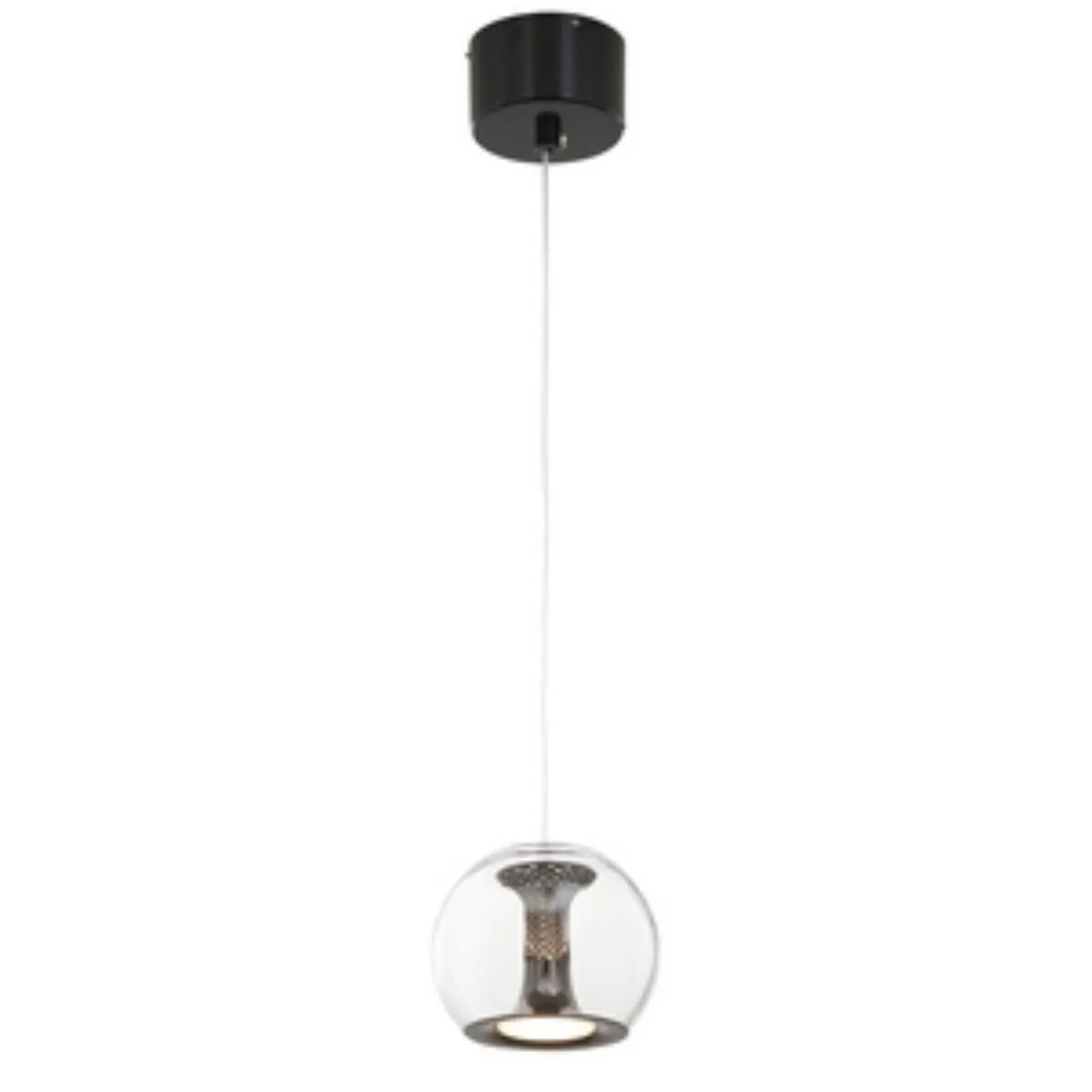 Подвес с черным каркасом, диаметром 12 см со стеклянным плафоном в форме воронки в цвете черный хром, скрытый внутри плафона светодиодный источник све