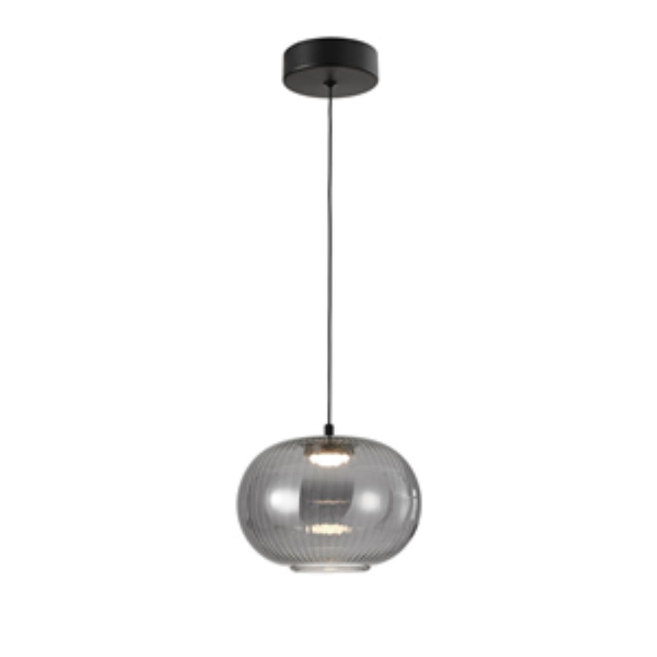 Подвес с черным каркасом, с компактным приплюснутым выдувным плафоном в виде сферы, в светлом дымчато-сером цвете , LED-модуль, регулируемая высота