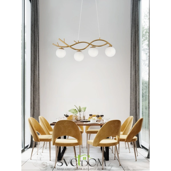 Органичный силуэт серии rosella напоминает о ветвях деревьев – природные формы привносят в дизайн светильника плавность и легкость. арматура сделана из металла и окрашена в благородный оттенок латуни. стеклянные плафоны-сферы поддерживают флористическую метафору, а их матовый белый оттенок идеально дополняет цветовую гамму модели. универсальная палитра без труда интегрируется в любой интерьер. сферическая форма плафонов обеспечивает мягкое и равномерное распределение светового потока. две подвесные люстры различного диаметра позволяют выбрать подходящий вариант с учетом размеров помещения. невидимые тросы создают иллюзию парящего в воздухе света – тренда современного дизайна. светильники отлично подойдут для освещения гостиной, кафе и ресторанов, станут частью декоративного ансамбля в интерьере. рекомендуемые стили – хай-тек, минимализм, сканди, лофт, модерн.