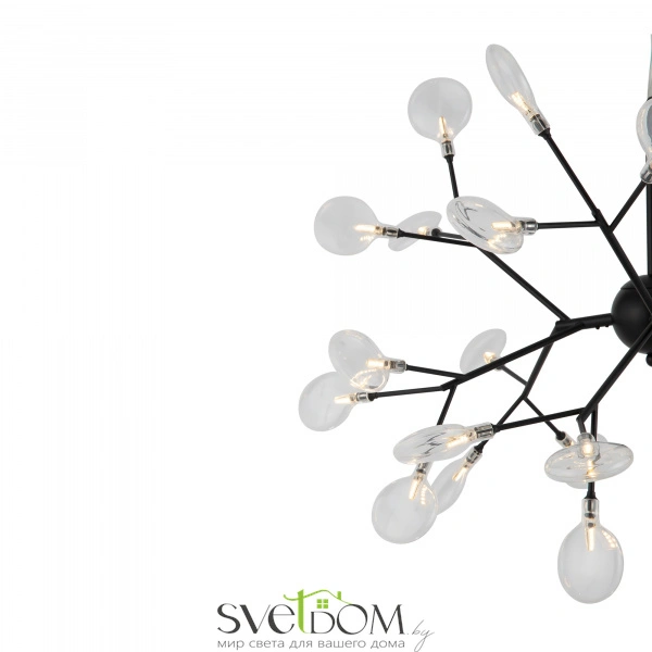Изящные светильники florencia - стильный арт-объект и украшение любого интерьера. в дизайне светильников можно увидеть последний модный тренд - флористические мотивы (плафоны напоминают цветущие деревья). серия сочетает в себе конструктивность, чистоту линий, лаконизм и целостность форм. черный цвет металлической арматуры делает светильники лаконичными и изящными.. серия florencia представлена двумя потолочными светильниками на 36 и 27 ламп, а также подвесным светильником на 27 ламп. цветовая температура ламп в комплекте - 3000-3300k