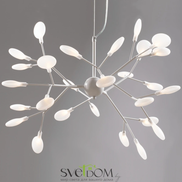 Изящные светильники florencia - стильный арт-объект и украшение любого интерьера. в дизайне светильников можно увидеть последний модный тренд - флористические мотивы (плафоны напоминают цветущие деревья). серия сочетает в себе конструктивность, чистоту линий, лаконизм и целостность форм. черный цвет металлической арматуры делает светильники лаконичными и изящными.. серия florencia представлена двумя потолочными светильниками на 36 и 27 ламп, а также подвесным светильником на 27 ламп. цветовая температура ламп в комплекте - 3000-3300k