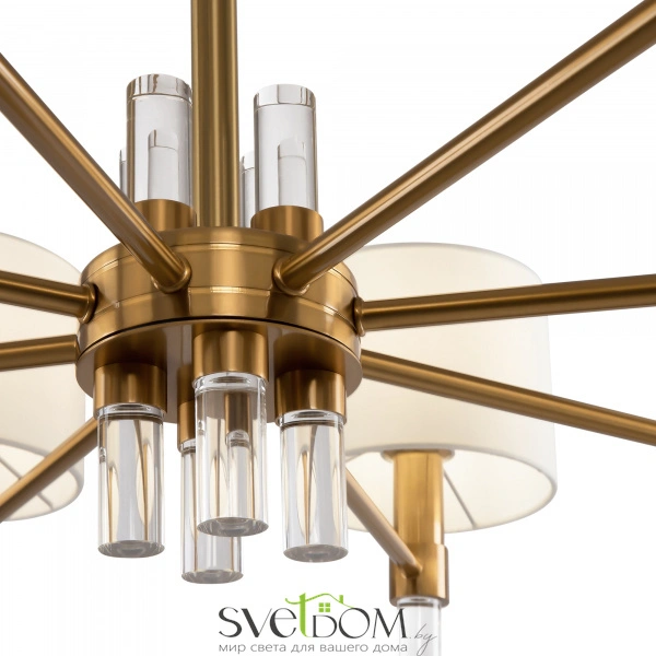 Серия lino – это элегантная интерпретация современной классики. металлическая арматура светильников окрашена в благородный оттенок латуни. белоснежные тканевые абажуры мягко приглушают световой поток. симметричность элементов создает легкий образ, а декор – прозрачные акриловые трубки – подчеркивает невесомость композиции.  комбинация фактур и материалов – модный тренд, добавляющий освещаемому пространству объема и глубины. серия предназначена для комплексной подсветки интерьера, включает как общие, так и зональные источники света: подвесную люстру на 6 и 8 плафонов, одиночный подвес, настольную лампу, торшер и бра. широкий выбор позволяет сформировать разнообразные световые сценарии в обстановках, оформленных в стиле неоклассика, модерн, ар-деко, эклектика.